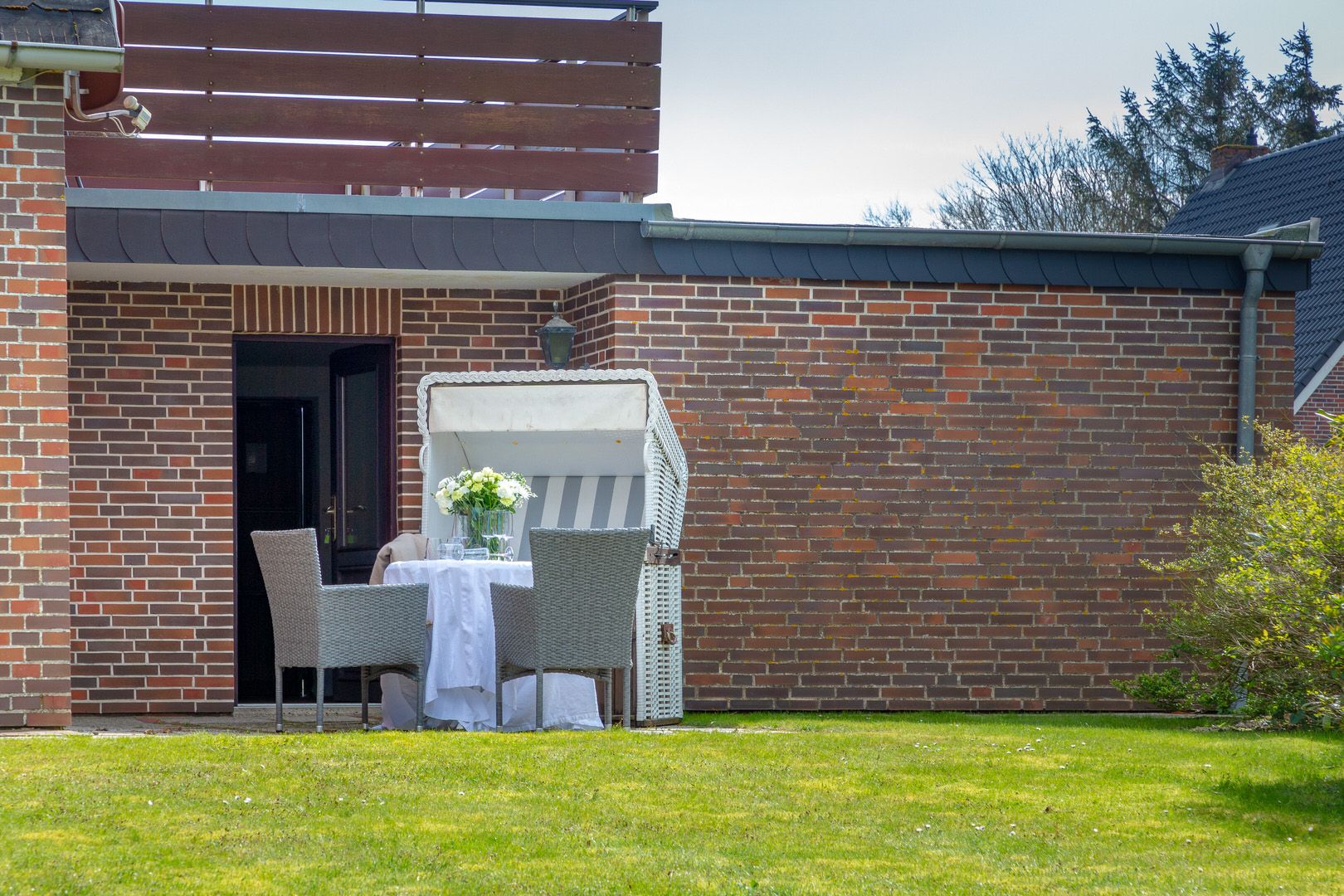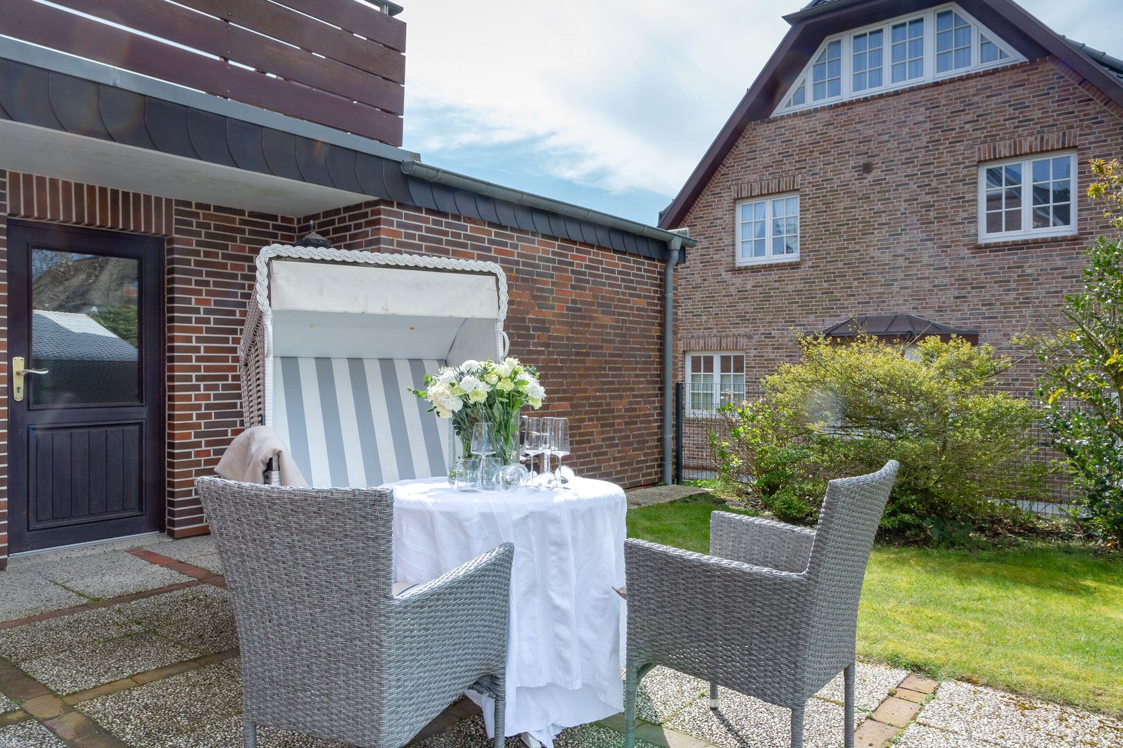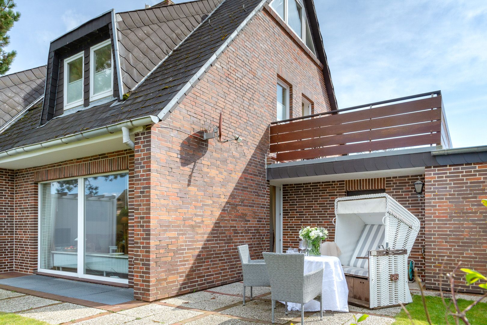 Genießen Sie sonnige Stunden auf Ihrer privaten Terrasse, ausgestattet mit bequemen Gartenmöbeln – perfekt, um die frische Nordseeluft zu genießen.