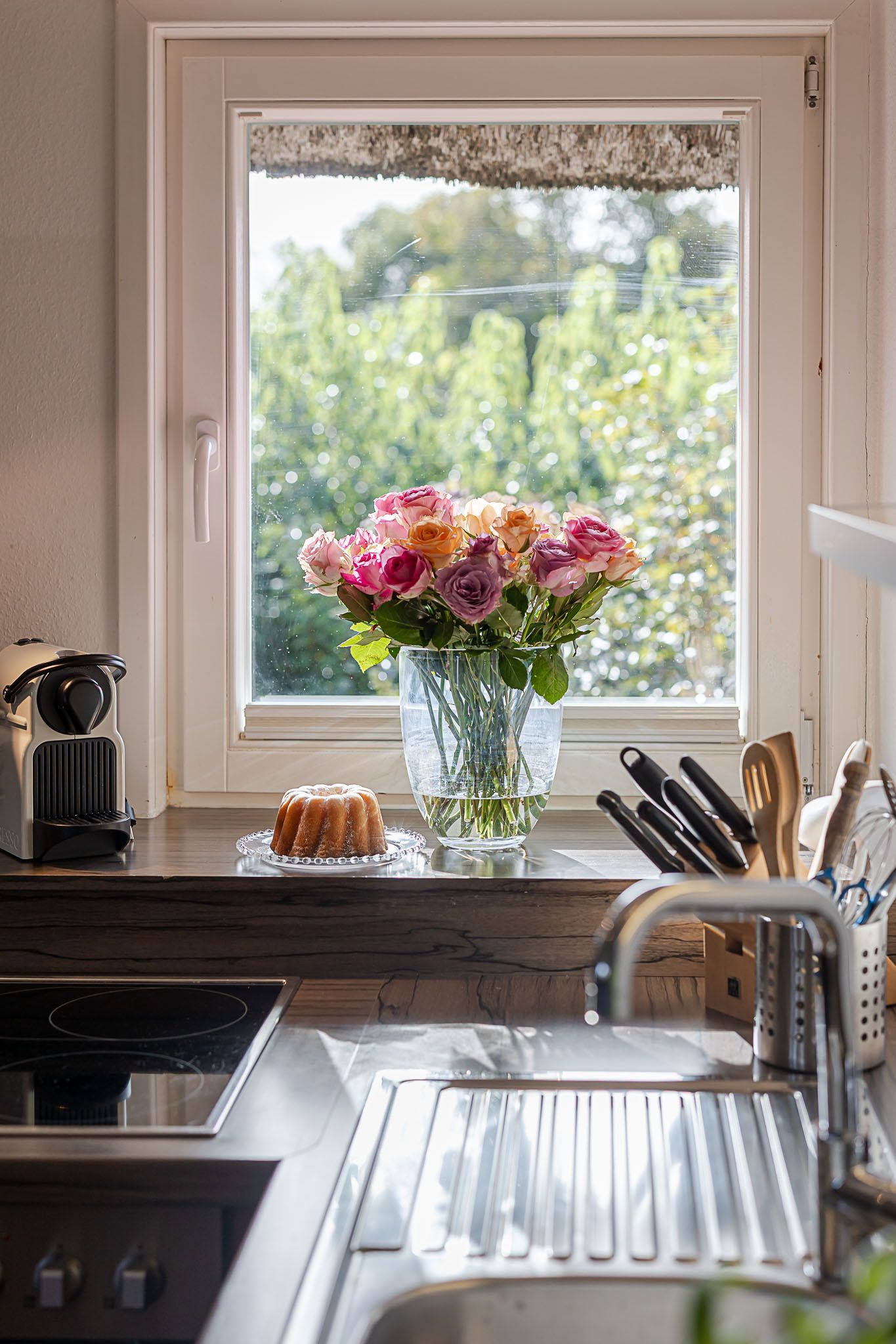 Zur Wohnung gehört eine separate, geschützte Terrasse im Erdgeschoss, umgeben von Grün – der perfekte Platz für das Frühstück im Freien oder ein Glas Wein in der Abendsonne.