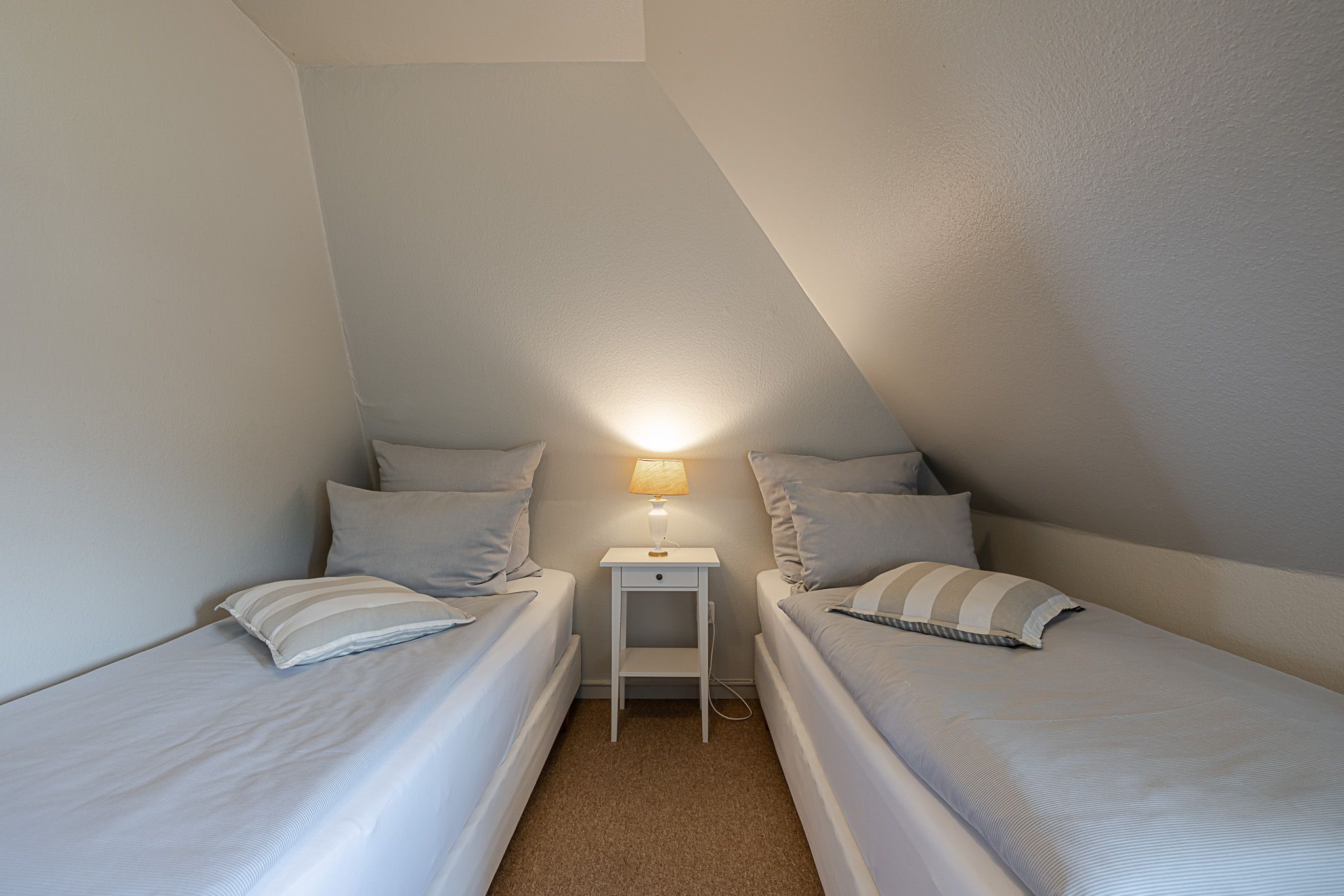 Zwei Schlafzimmer sorgen für erholsame Nächte: Das erste mit einem komfortablen Doppelbett (1,60 × 2,00 m), das zweite mit zwei getrennt stehenden Einzelbetten – ideal für Freunde, Kinder oder Gäste, die mehr Raum wünschen. Beide Zimmer sind liebevoll gestaltet, hell und ruhig gelegen.