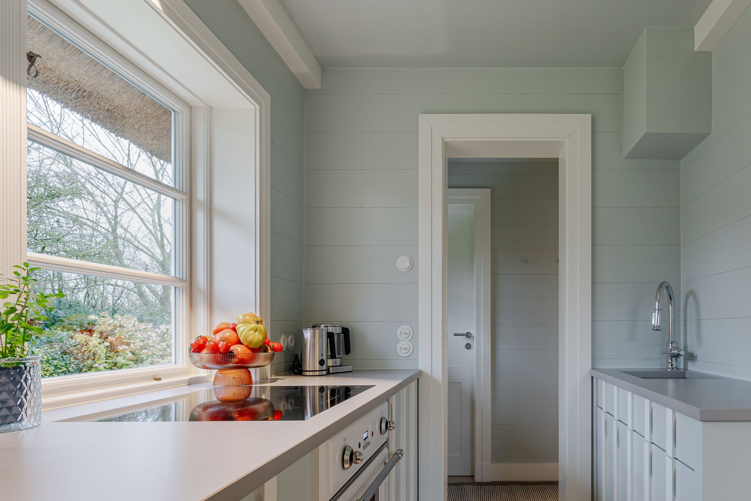 Das liebevoll gestaltete Häuschen besticht durch hochwertige Holzeinbauten, die ihm eine warme Atmosphäre und natürliche Eleganz verleihen.