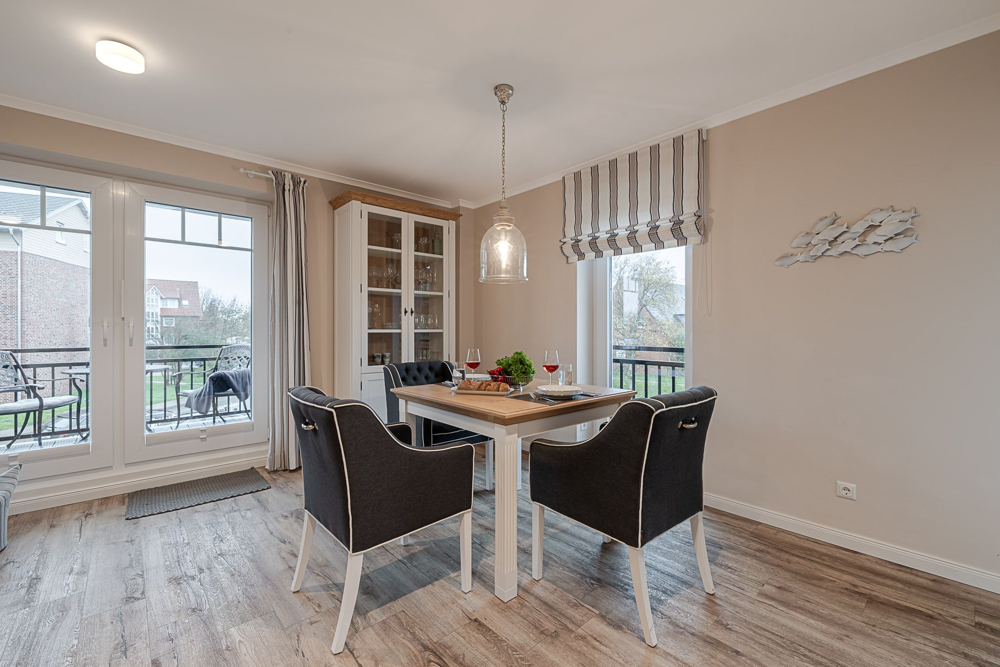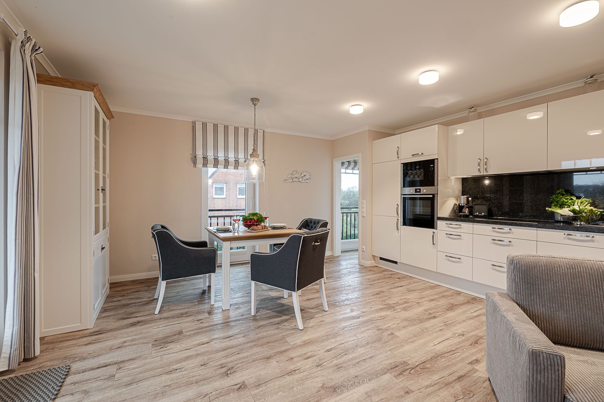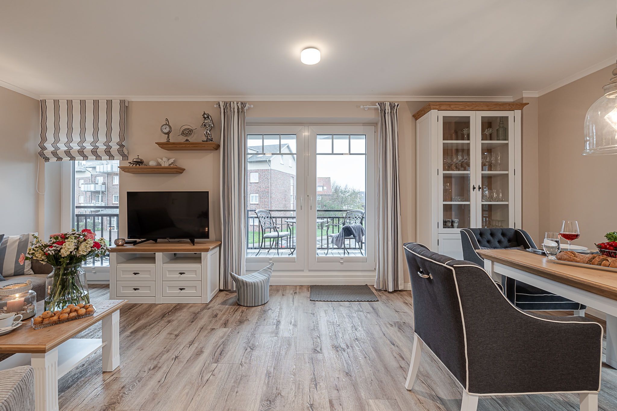 Ein besonderes Highlight ist der sonnige Westbalkon, der auch bei norddeutschem Wetter durch seine geschützte Lage oft zum Verweilen im Freien einlädt – ideal, um die frische Nordseeluft zu genießen.