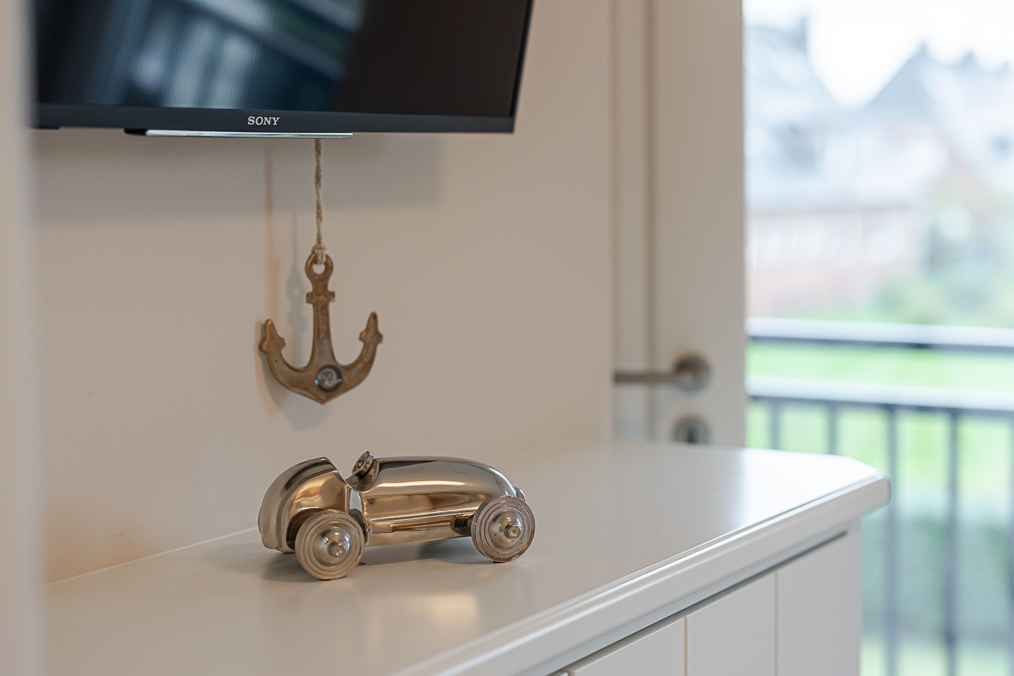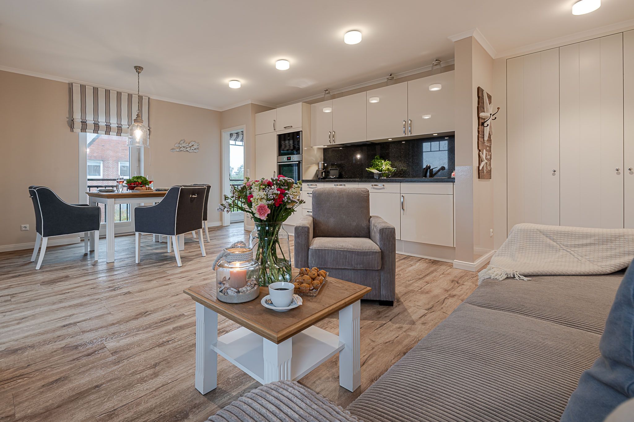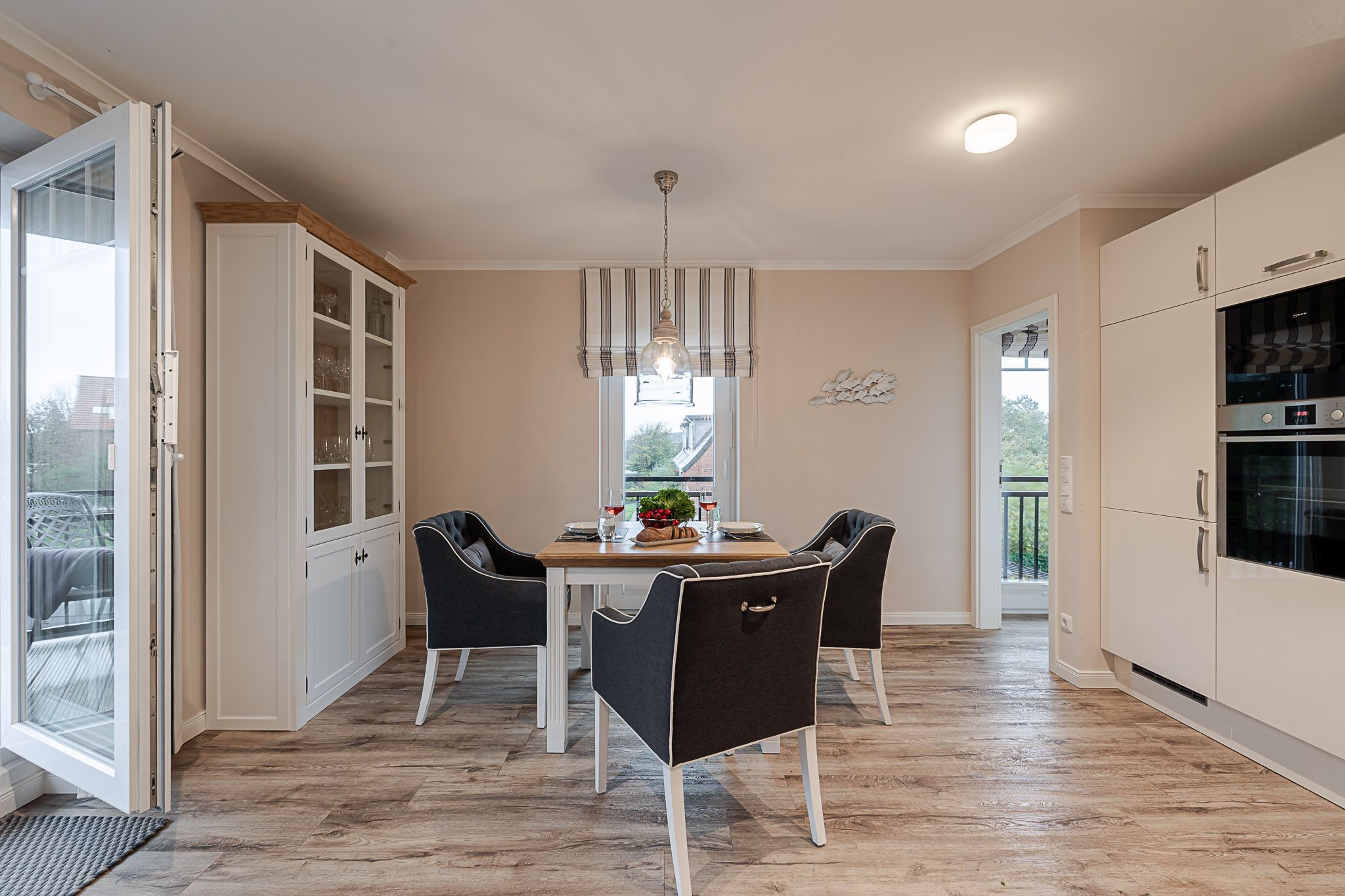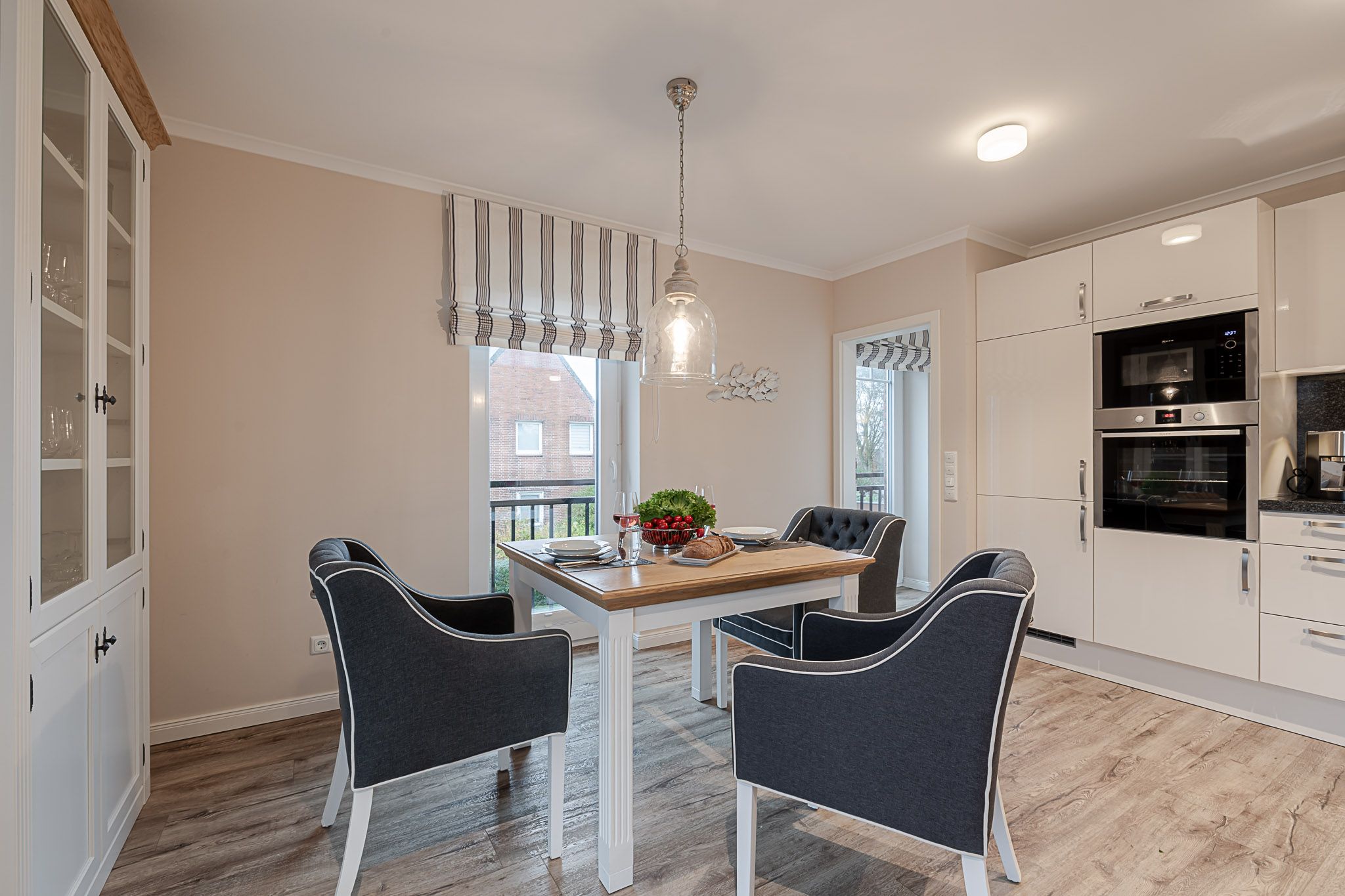 Ein besonderes Highlight ist der sonnige Westbalkon, der auch bei norddeutschem Wetter durch seine geschützte Lage oft zum Verweilen im Freien einlädt – ideal, um die frische Nordseeluft zu genießen.