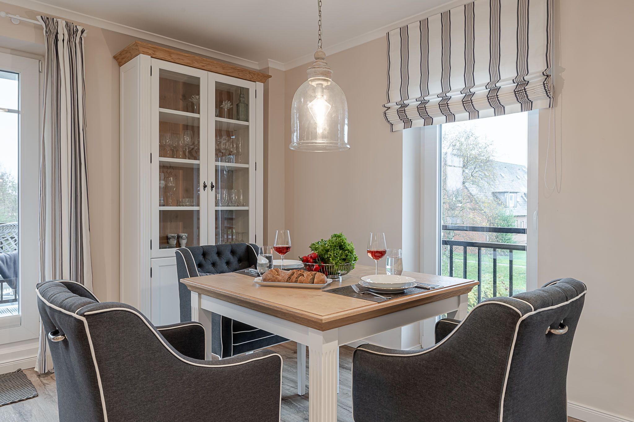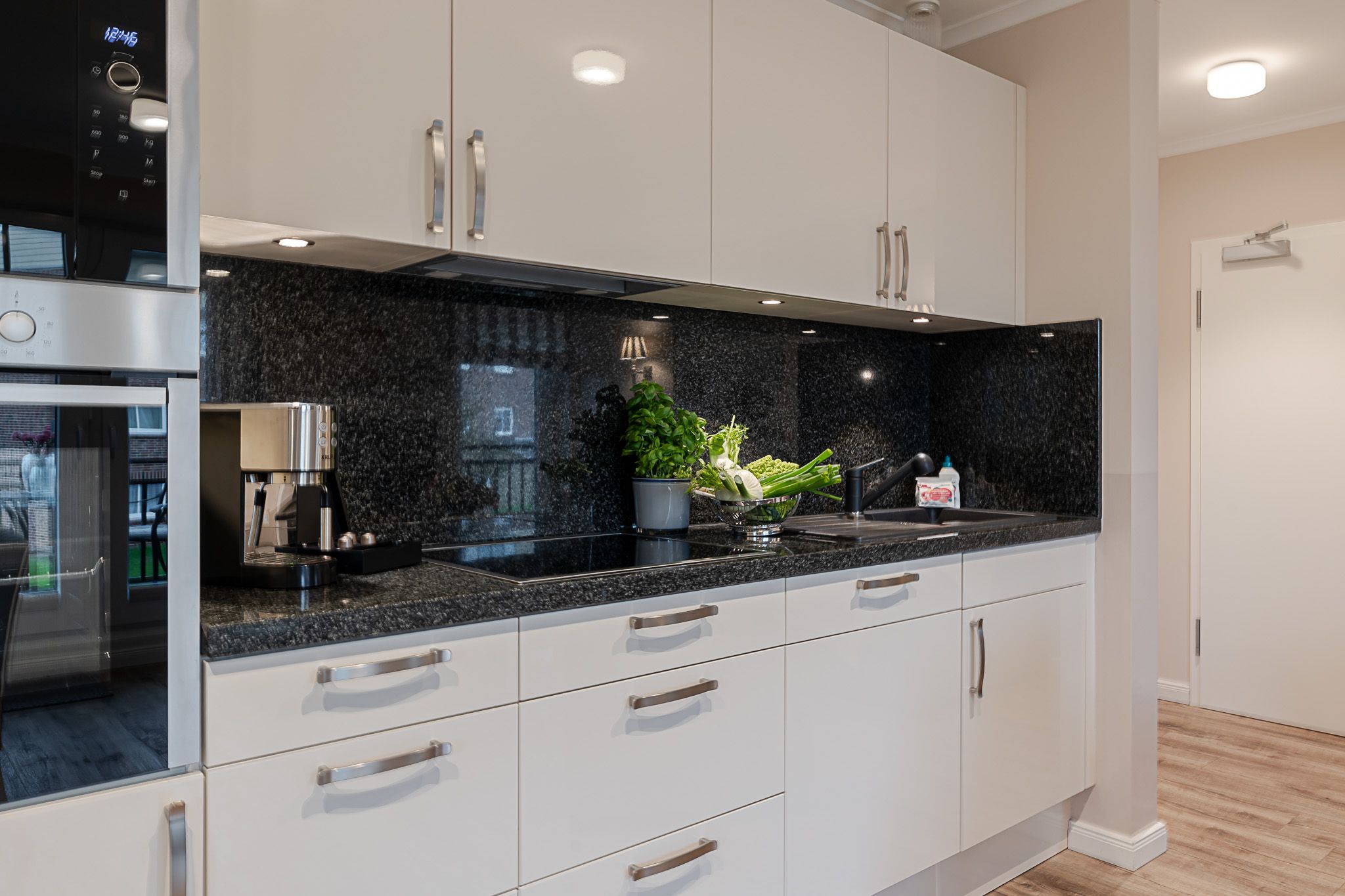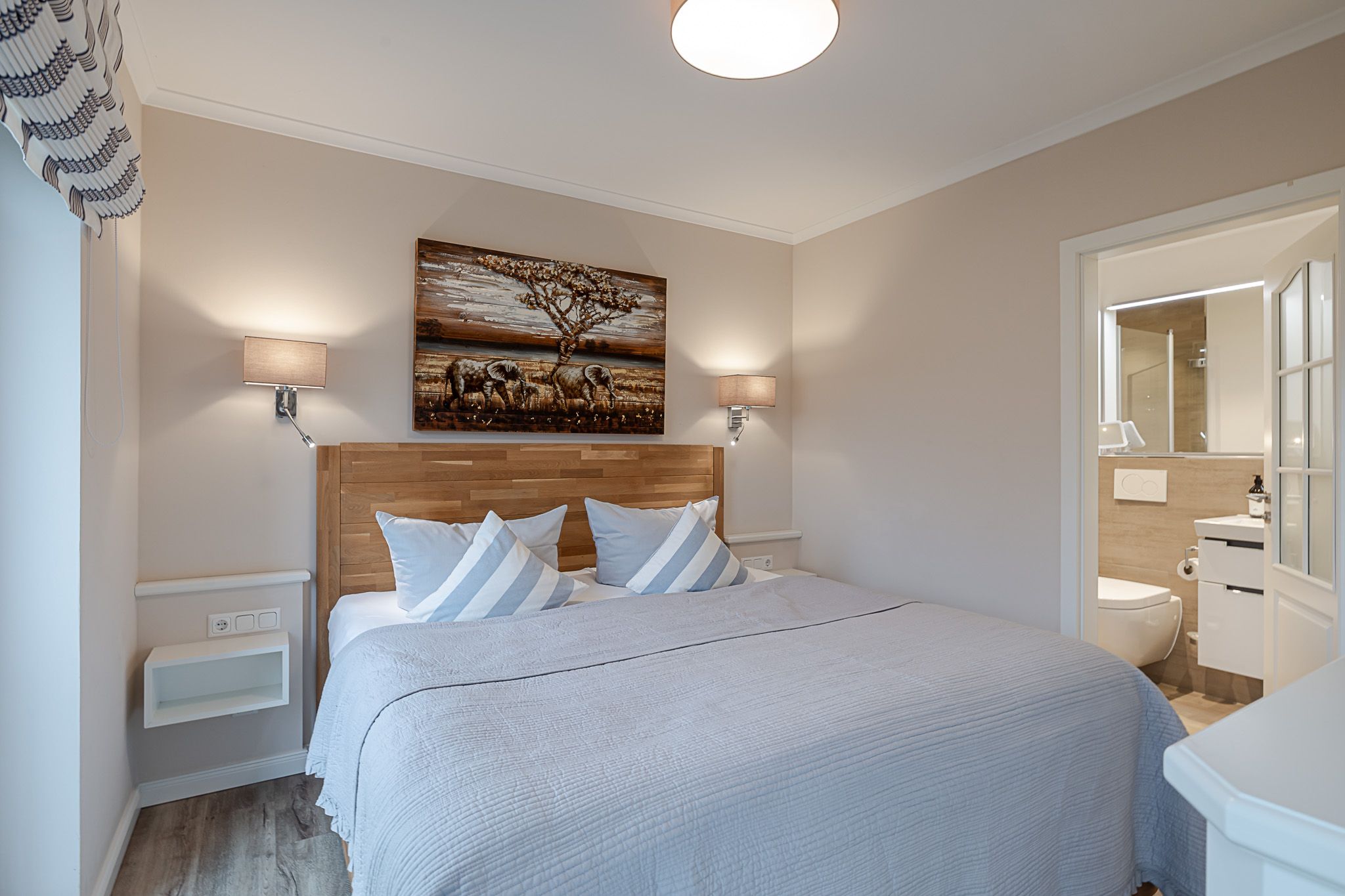Die barrierefreie 51 m² große Ferienwohnungerwohnung ist bequem per Aufzug erreichbar und bietet Platz für bis zu 3 Personen. Neben einem separaten Schlafzimmer überzeugt der lichtdurchflutete Wohn-Essbereich mit stilvollem Interieur und einem komfortablen Schlafsofa. Die moderne Küche ist voll ausgestattet und lädt zum gemeinsamen Kochen ein.