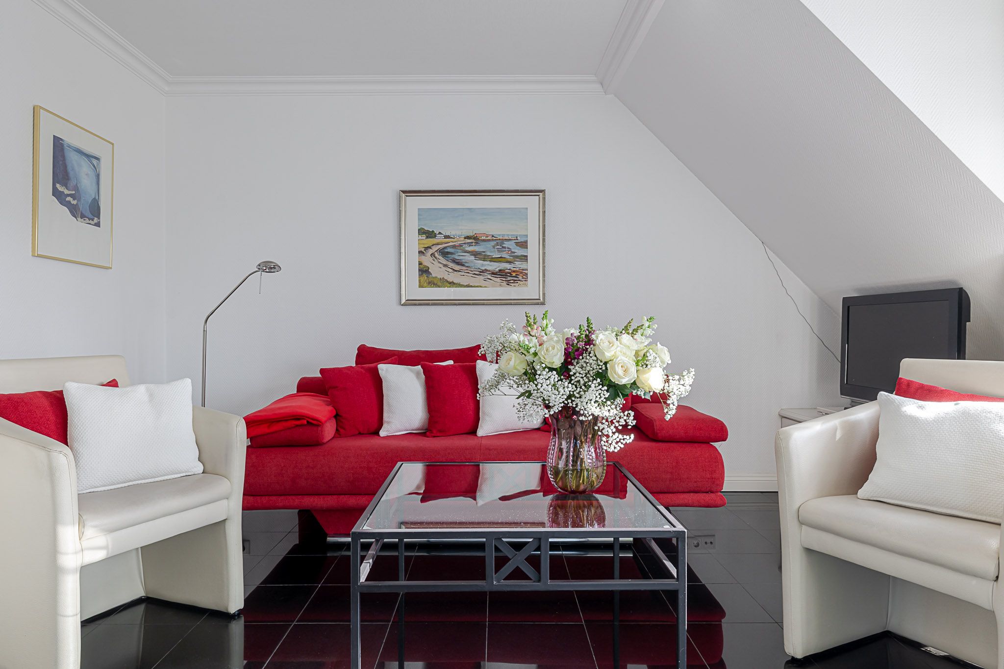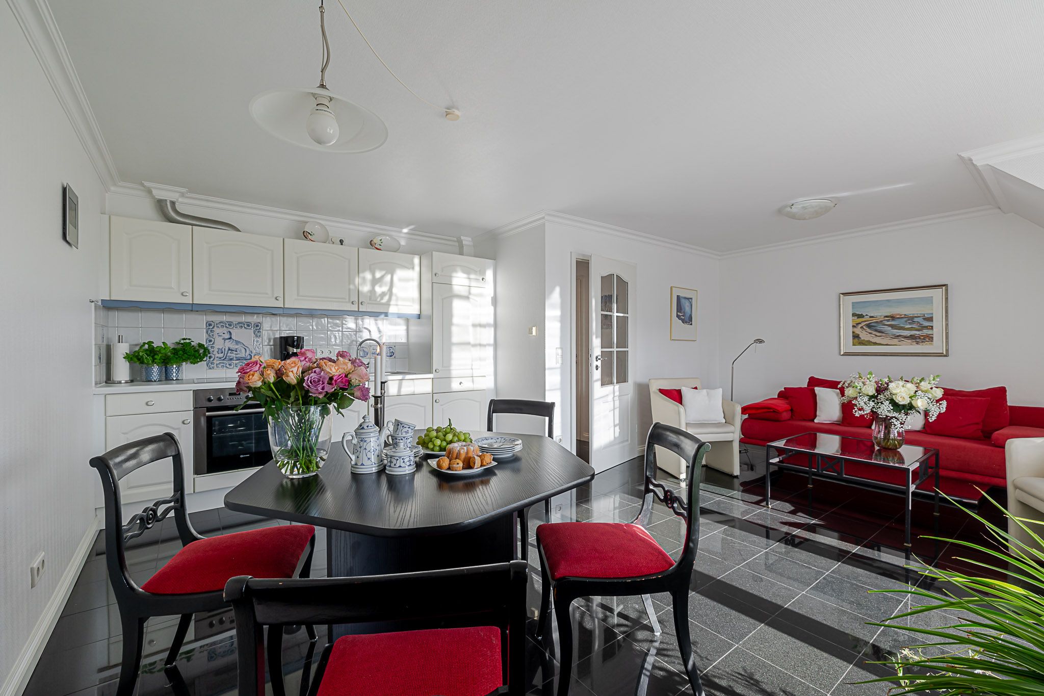 Die Ferienwohnung Strand im Obergeschoss ist der perfekte Rückzugsort für zwei Personen, die eine ruhige und moderne Unterkunft suchen. Sie bietet ein separates Schlafzimmer, ein freundliches Wohnzimmer mit offener, voll ausgestatteter Küchenzeile inklusive Backofen und Spülmaschine sowie ein Badezimmer mit Dusche/WC. Dank Fußbodenheizung genießen Sie auch an kühleren Tagen wohltuende Wärme.