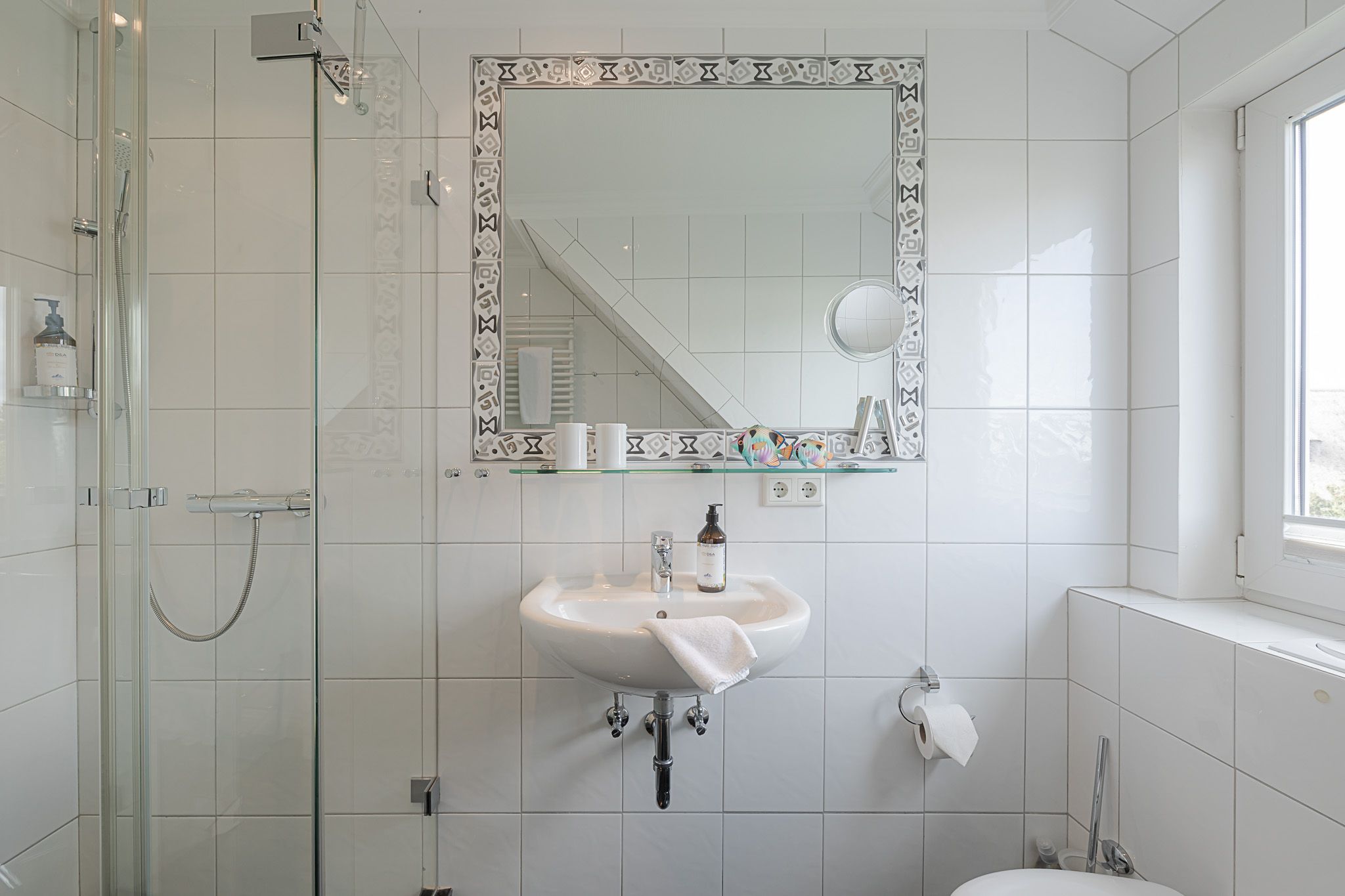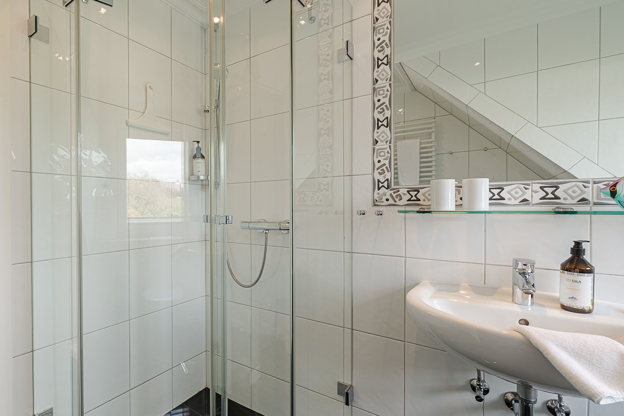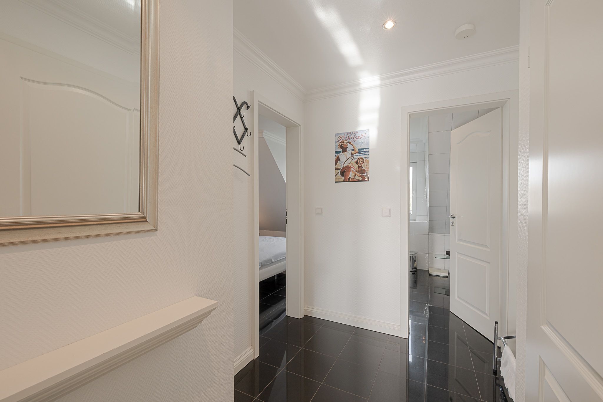 Die Ferienwohnung Strand im Obergeschoss ist der perfekte Rückzugsort für zwei Personen, die eine ruhige und moderne Unterkunft suchen. Sie bietet ein separates Schlafzimmer, ein freundliches Wohnzimmer mit offener, voll ausgestatteter Küchenzeile inklusive Backofen und Spülmaschine sowie ein Badezimmer mit...