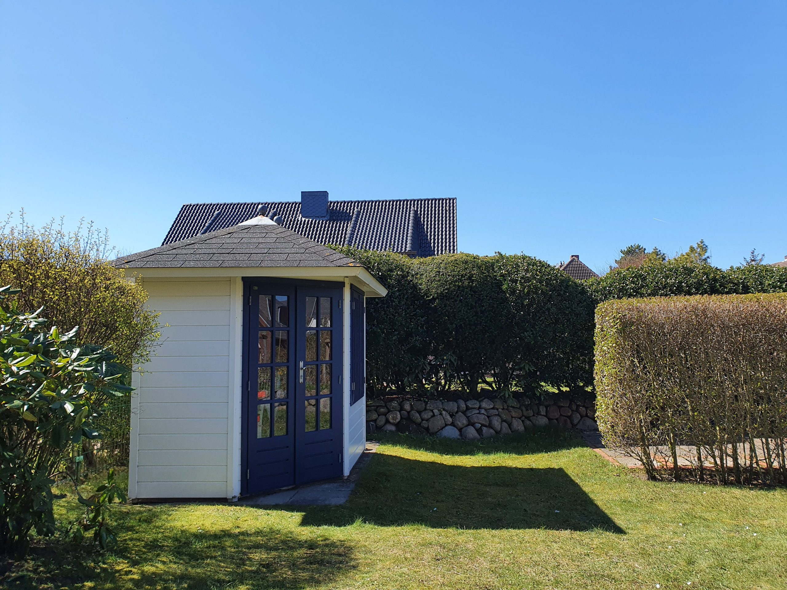 Draußen rundet der liebevoll angelegte Garten das Gesamtbild ab: eine sonnige Terrasse, ein eigener Strandkorb und viel Grün. Bitte beachten Sie, dass das Gartenhaus privat ist und nicht zur Nutzung zur Verfügung steht. Fahrräder können bequem im Garten abgestellt werden, und ein Privatparkplatz befindet sich direkt am Haus.