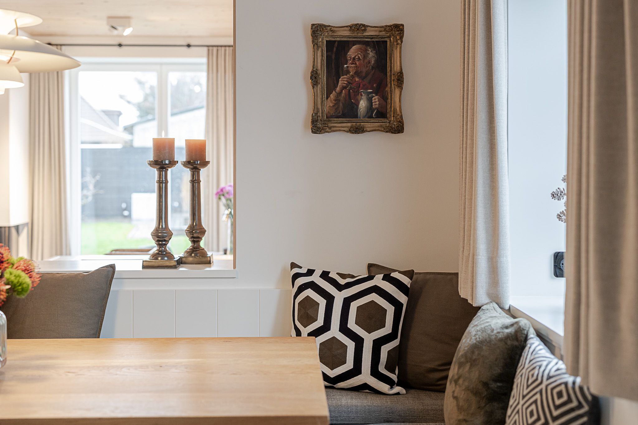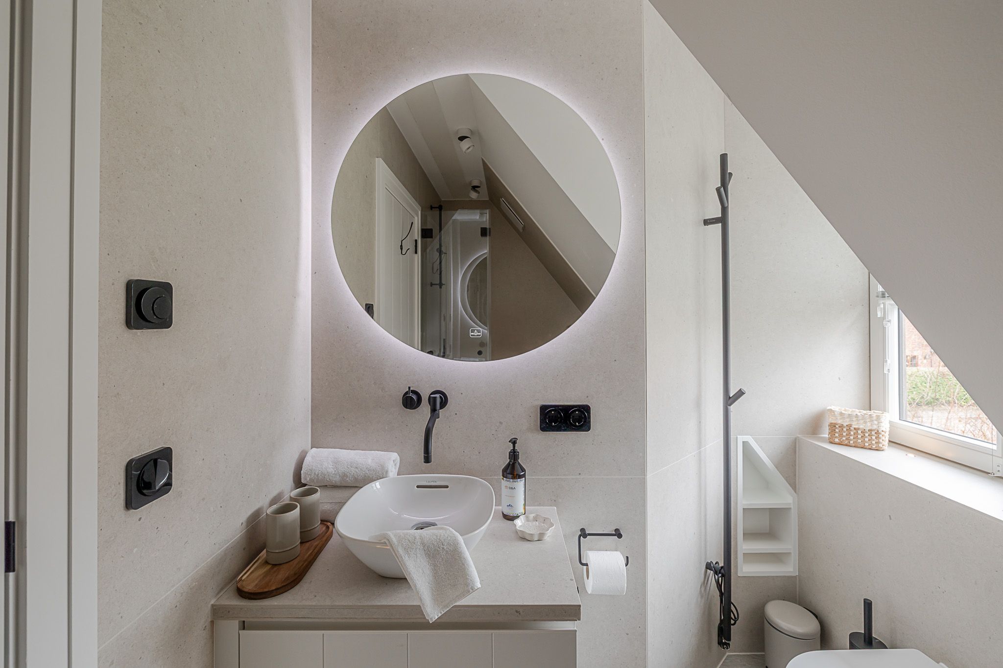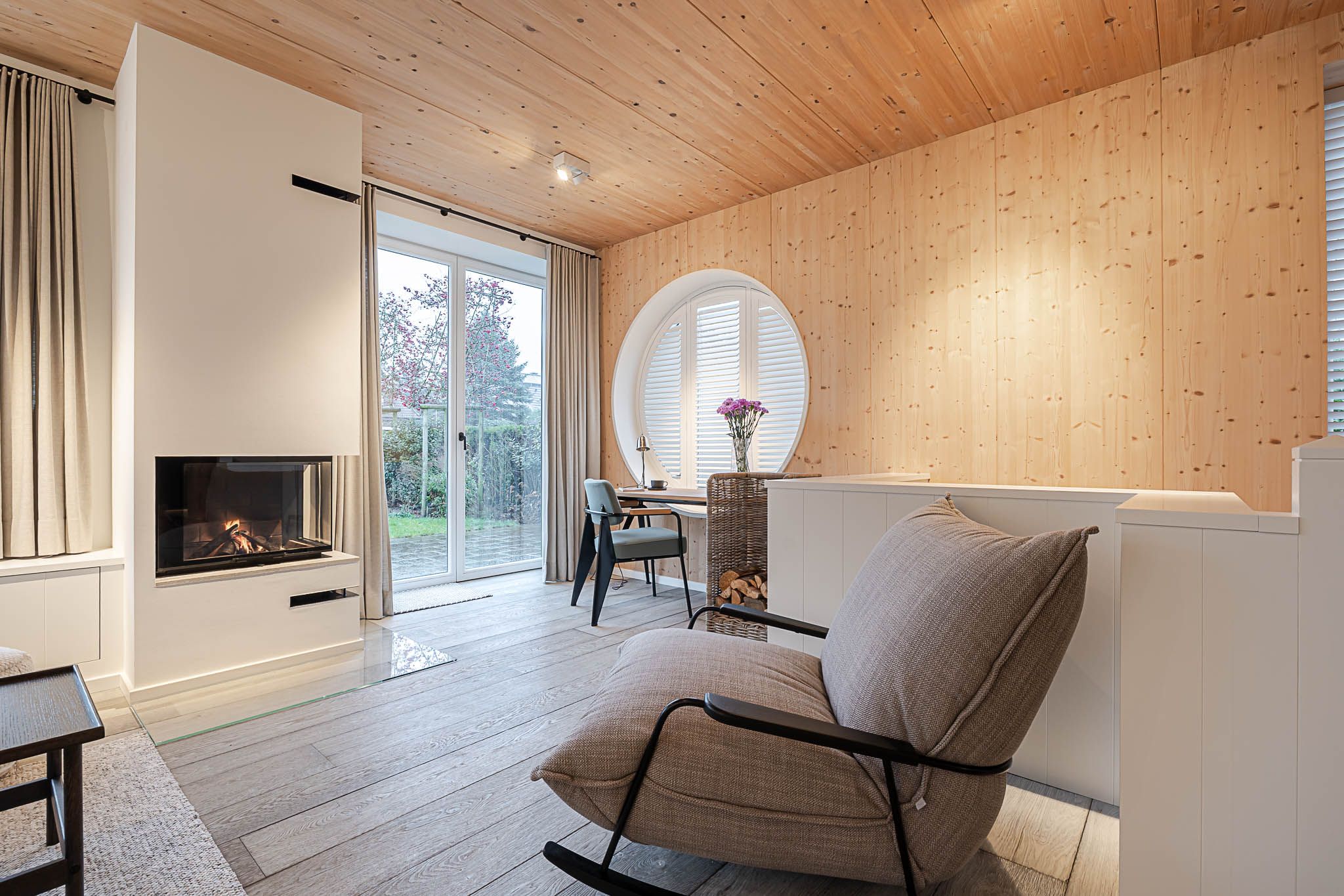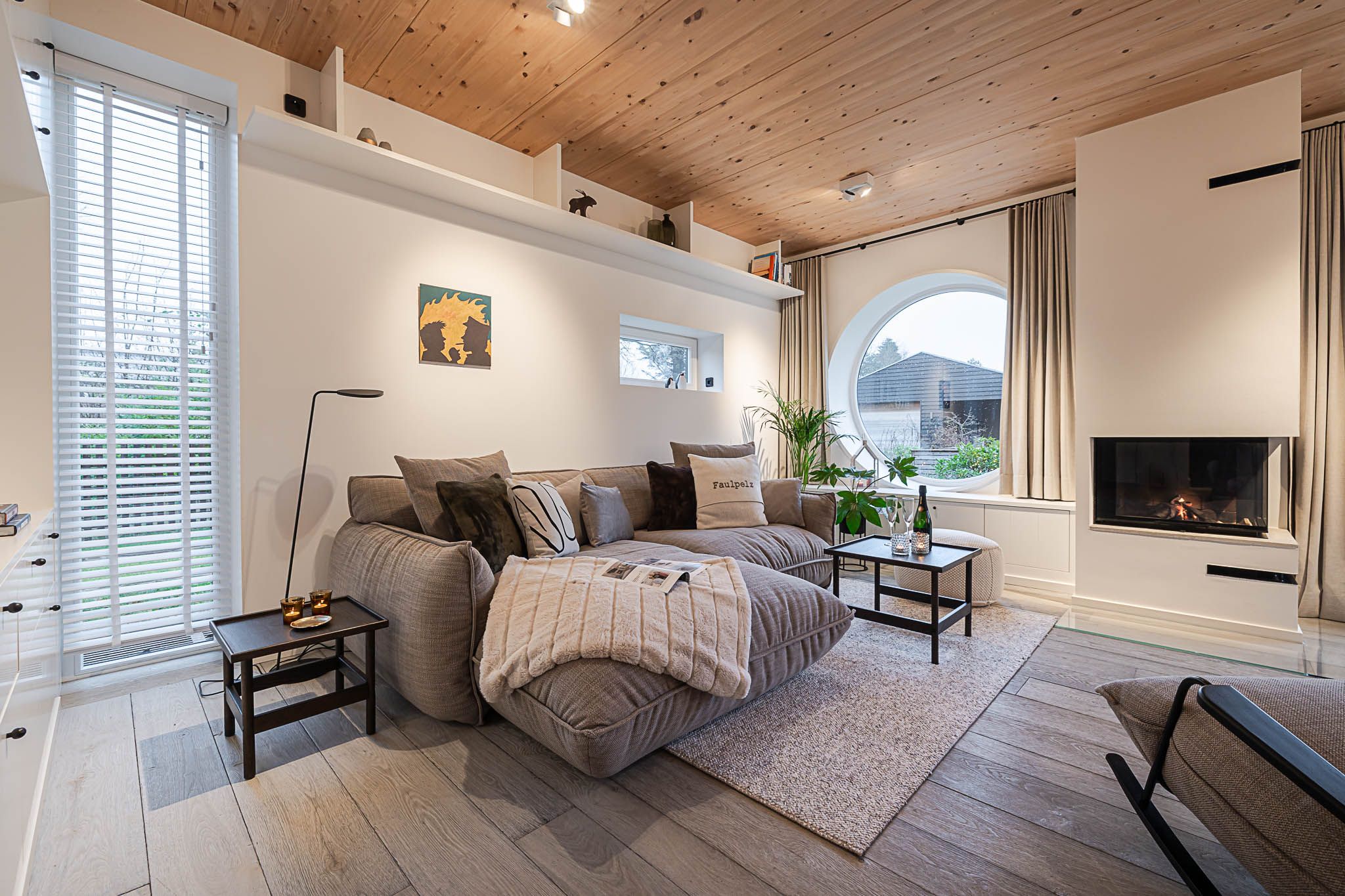 Das „Sylter Strandholz“ besticht durch klare, zeitlose Architektur und hochwertigste Materialien, die eine Atmosphäre der Leichtigkeit und Exklusivität schaffen. Die großzügigen, runden Fenster laden förmlich dazu ein, den Blick auf den liebevoll gepflegten Garten zu genießen und den Tag in harmonischem Licht zu erleben. Der offene Raumfluss im Inneren vermittelt eine unaufdringliche Weite und lässt jeden Moment in diesem Haus zu etwas Besonderem werden.