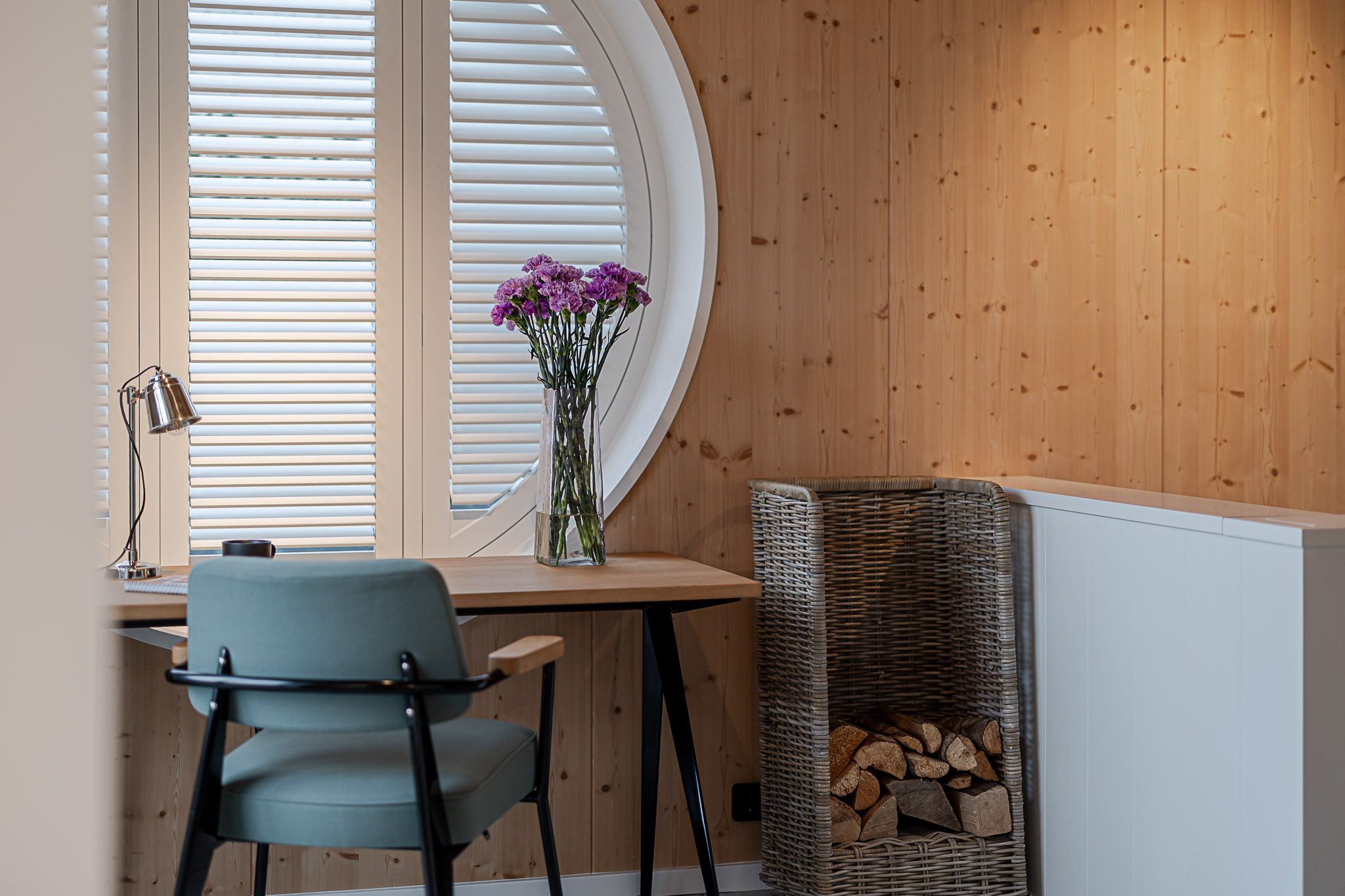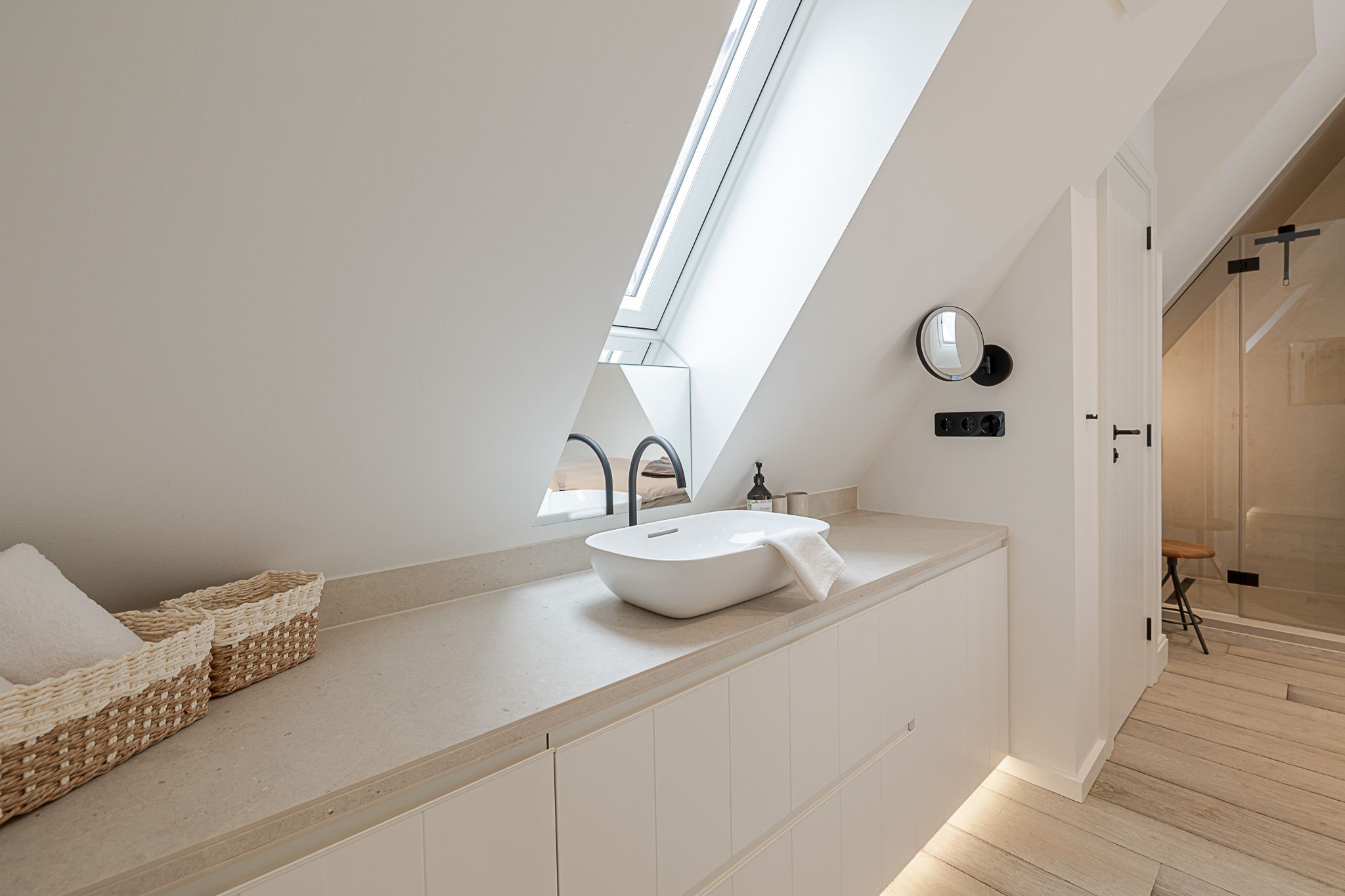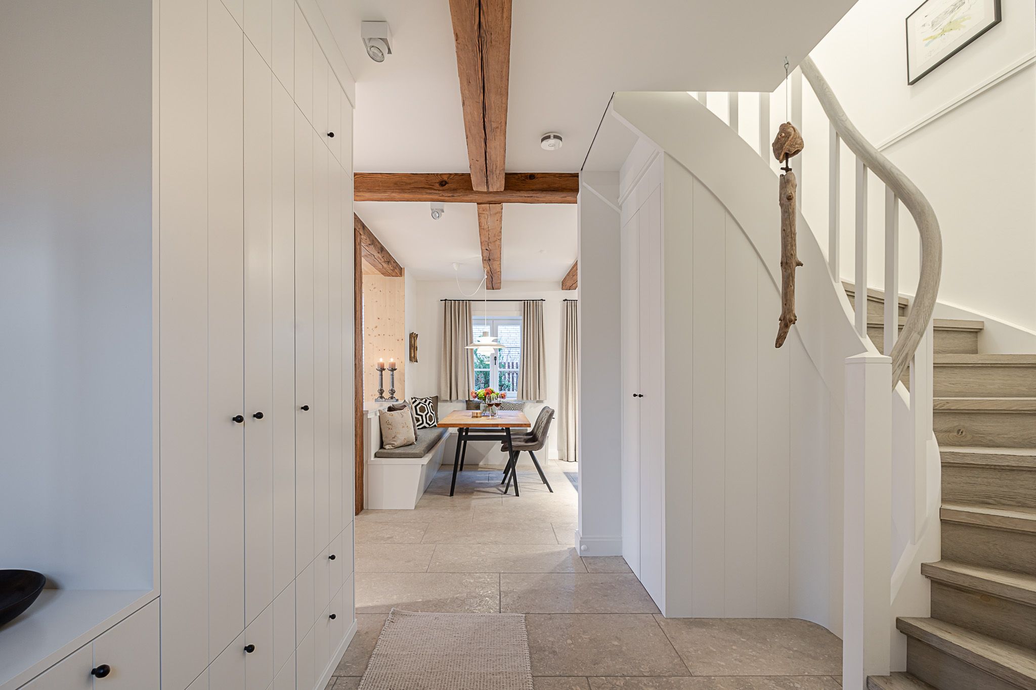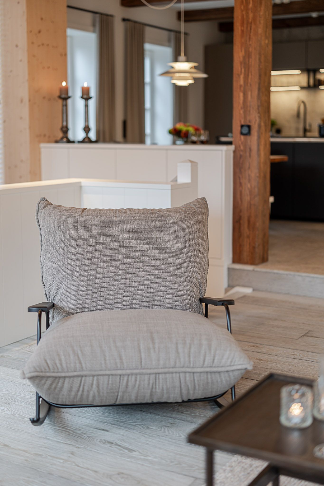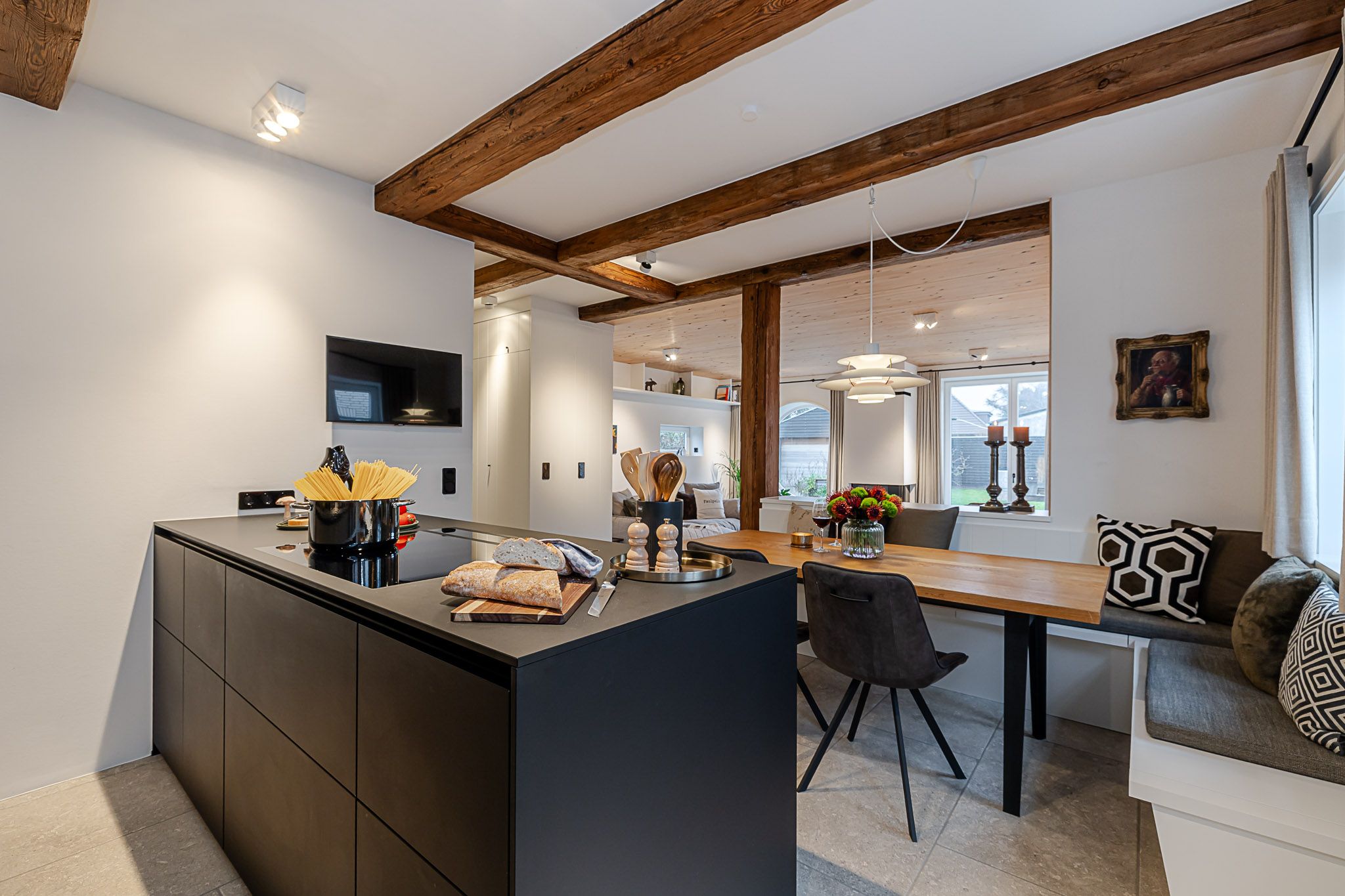 Das „Sylter Strandholz“ besticht durch klare, zeitlose Architektur und hochwertigste Materialien, die eine Atmosphäre der Leichtigkeit und Exklusivität schaffen. Die großzügigen, runden Fenster laden förmlich dazu ein, den Blick auf den liebevoll gepflegten Garten zu genießen und den Tag in harmonischem Licht zu erleben. Der offene Raumfluss im Inneren vermittelt eine unaufdringliche Weite und lässt jeden Moment in diesem Haus zu etwas Besonderem werden.