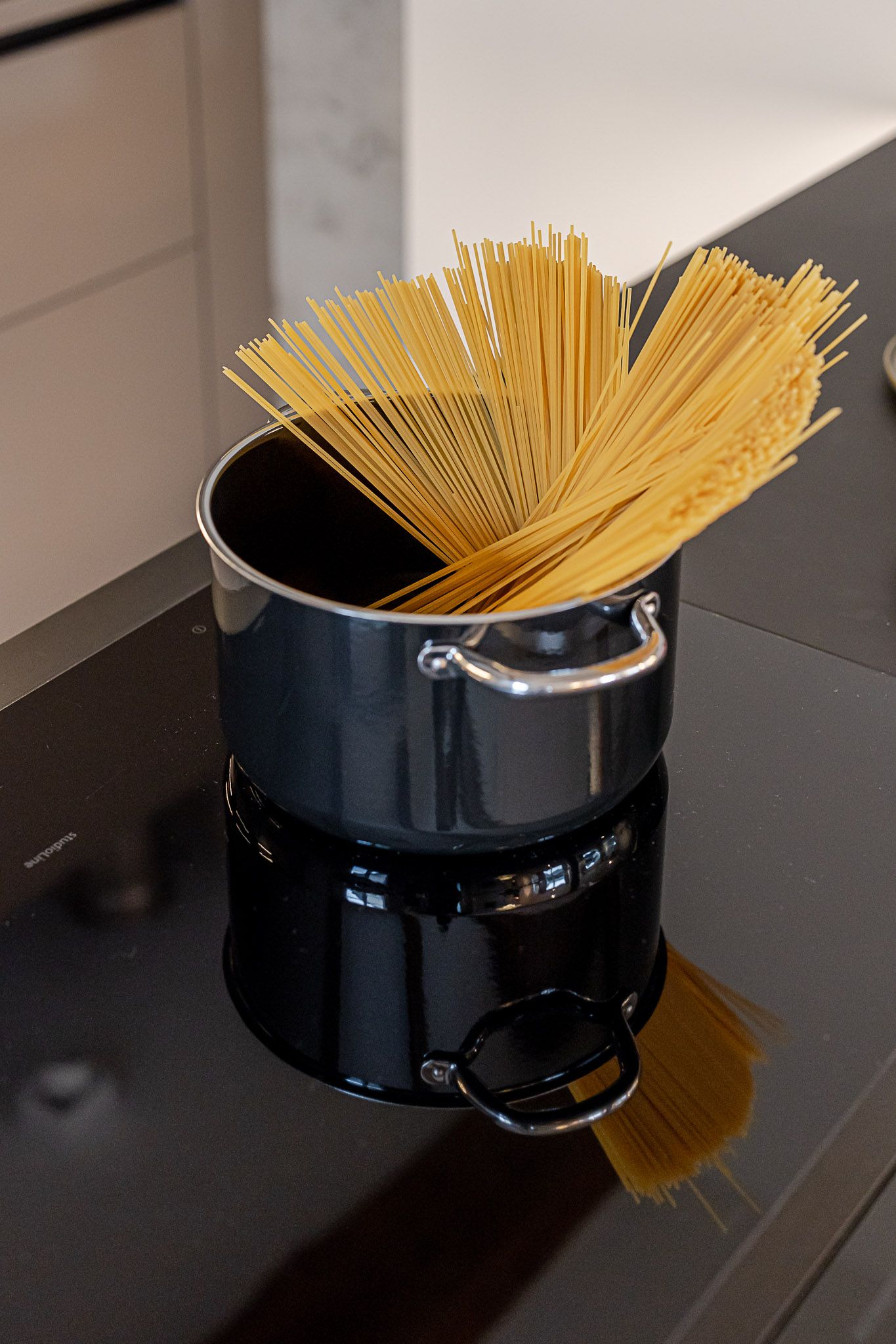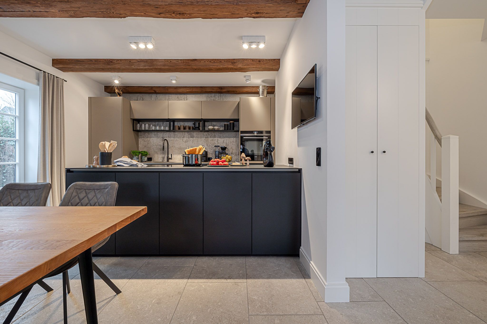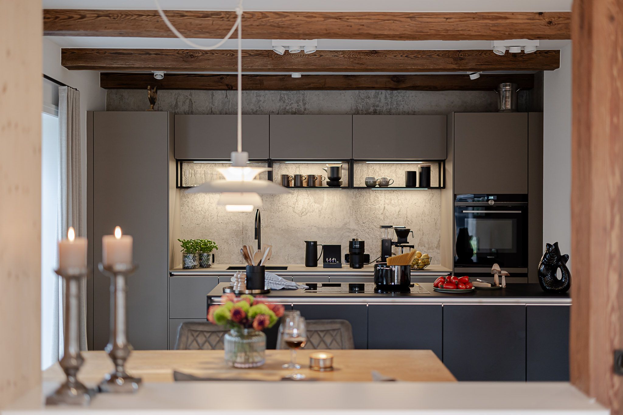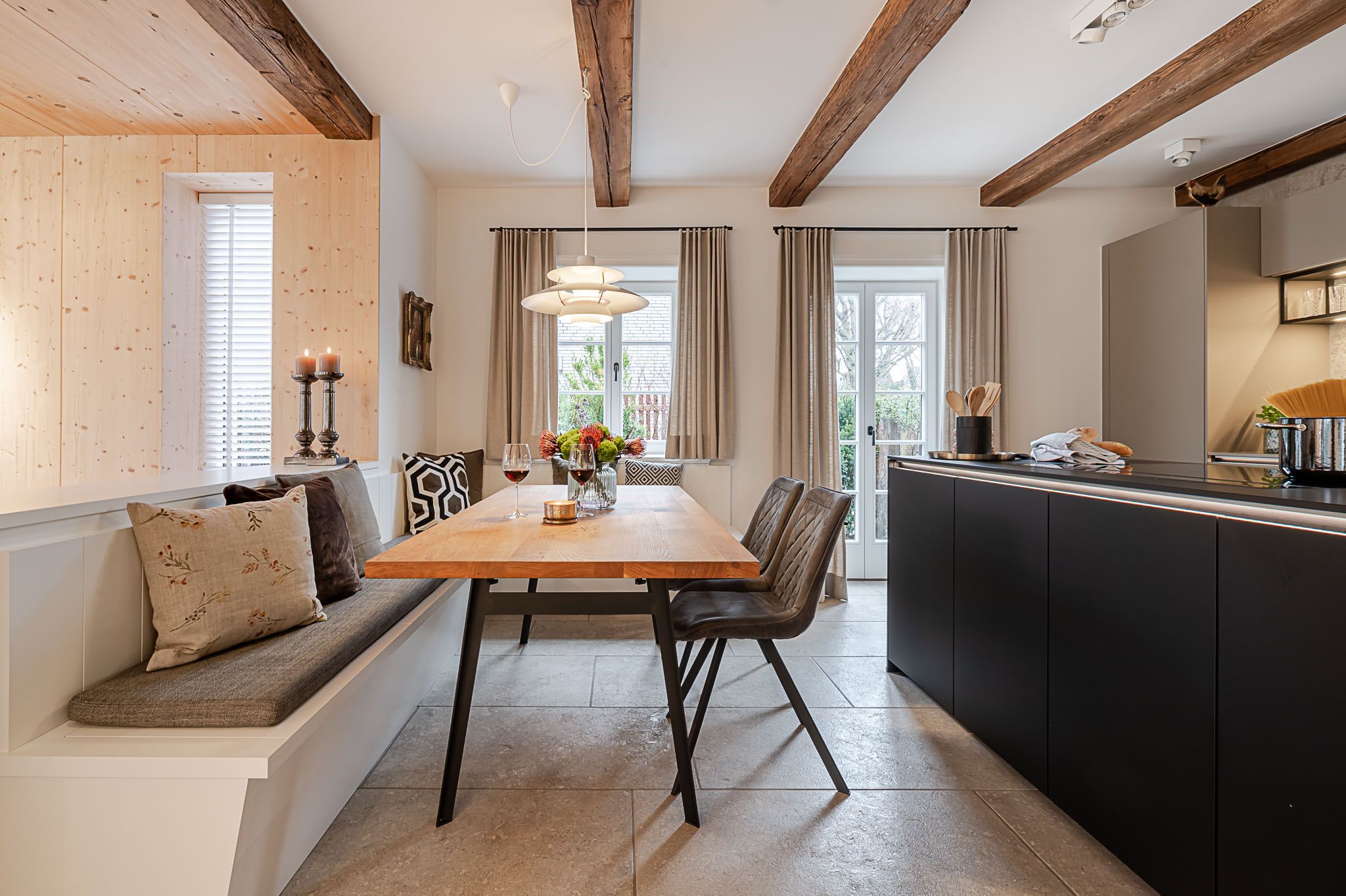 Im Erdgeschoss erwartet Sie ein lichtdurchfluteter Wohn-Essbereich, der mit einem stilvollen Holzkamin ausgestattet ist – perfekt für gemütliche Stunden, in denen die Zeit stillzustehen scheint. Hier können Sie entspannen und die wohlige Wärme genießen, während Sie den Tag ausklingen lassen. Die offene, hochmoderne Küche ist ein wahres Paradies für jeden Hobbykoch, ausgestattet mit besten Siemens-Geräten, darunter ein Backofen mit integrierter Mikrowelle, Induktionskochfeld, Geschirrspüler und ein Kühlschrank mit Gefrierfach – alles, was das Herz begehrt.