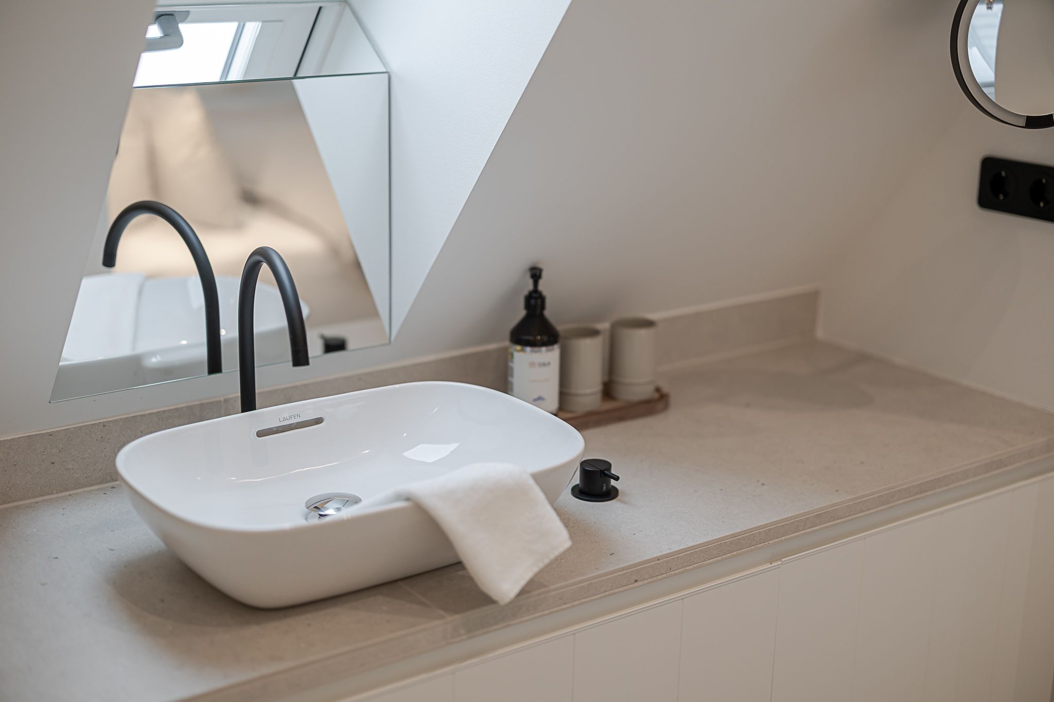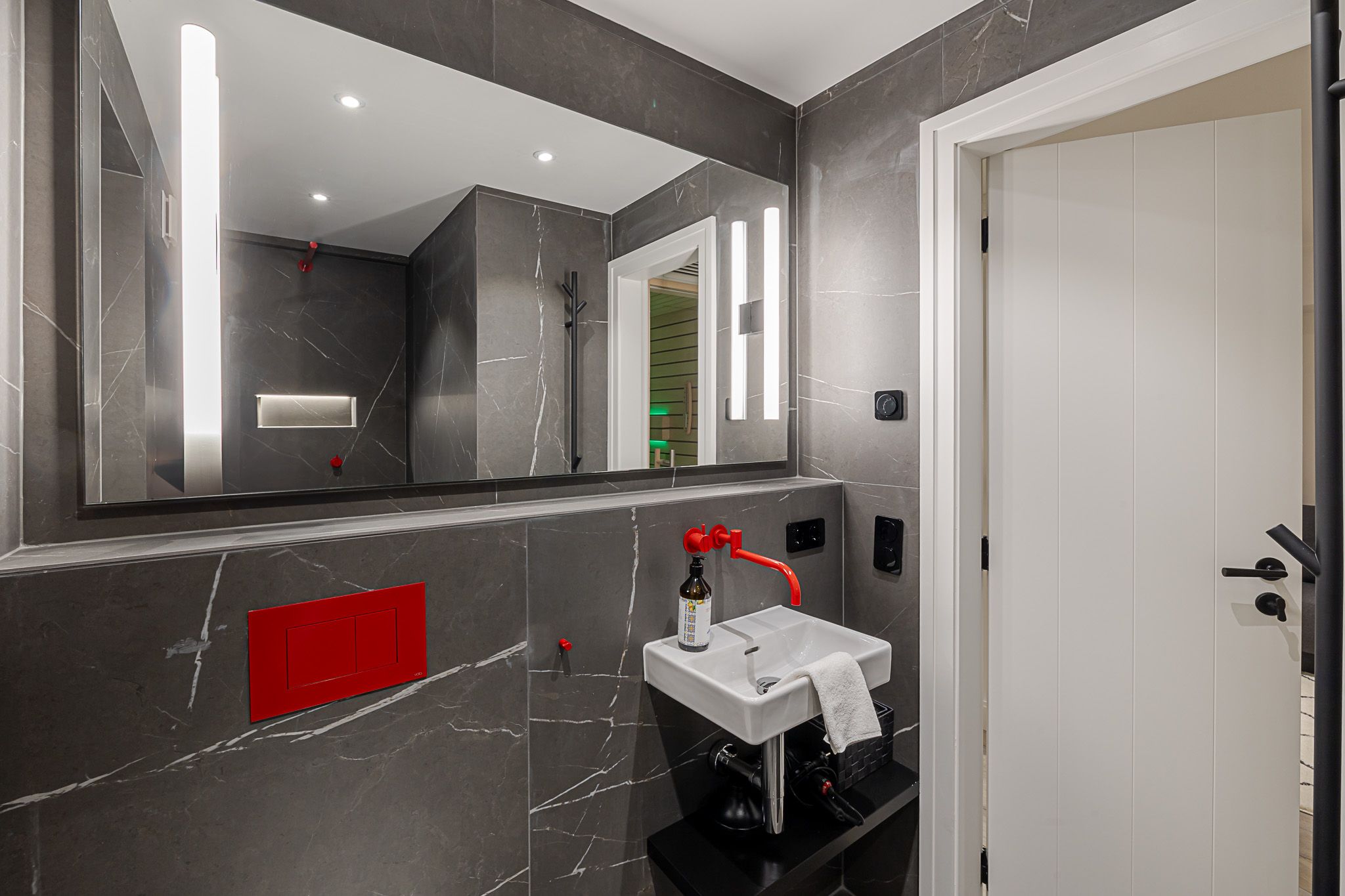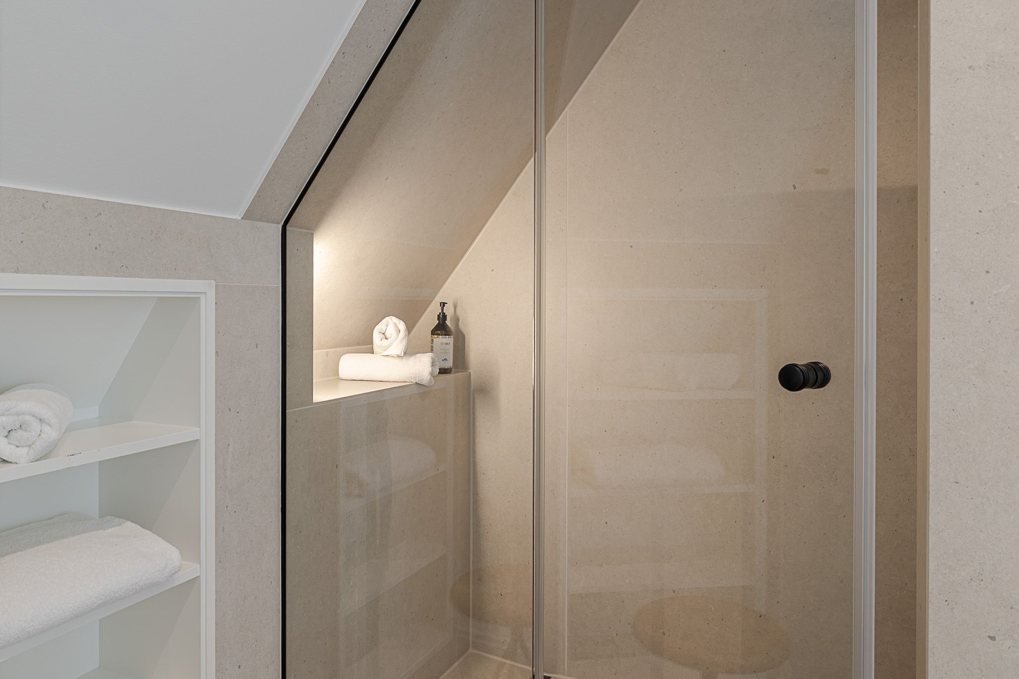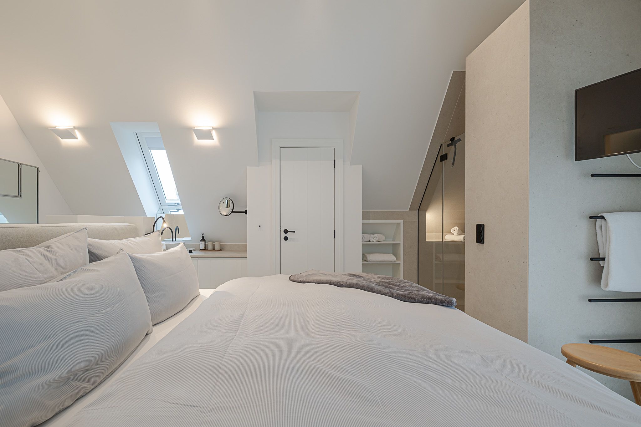 Im oberen Bereich des Hauses finden Sie zwei elegante Schlafzimmer. Das eine, mit einem großzügigen Boxspringbett (1,80 x 2,00 m) und einem luxuriösen Bad en Suite, bietet Ihnen absolute Privatsphäre und Komfort. Das andere Schlafzimmer, ebenso mit einem hochwertigen Boxspringbett (1,80 x 2,00 m), verwöhnt Sie mit einem Hauch von Exklusivität und ebenfalls einem eigenen TV. Im Souterrain erwartet Sie ein zusätzliches Schlafzimmer mit Schlafcouch – ideal für Gäste oder kleine Auszeiten. Hier befindet sich auch ein modernes Bad mit Dusche sowie eine private Sauna für die besonderen Momente der Entspannung.
