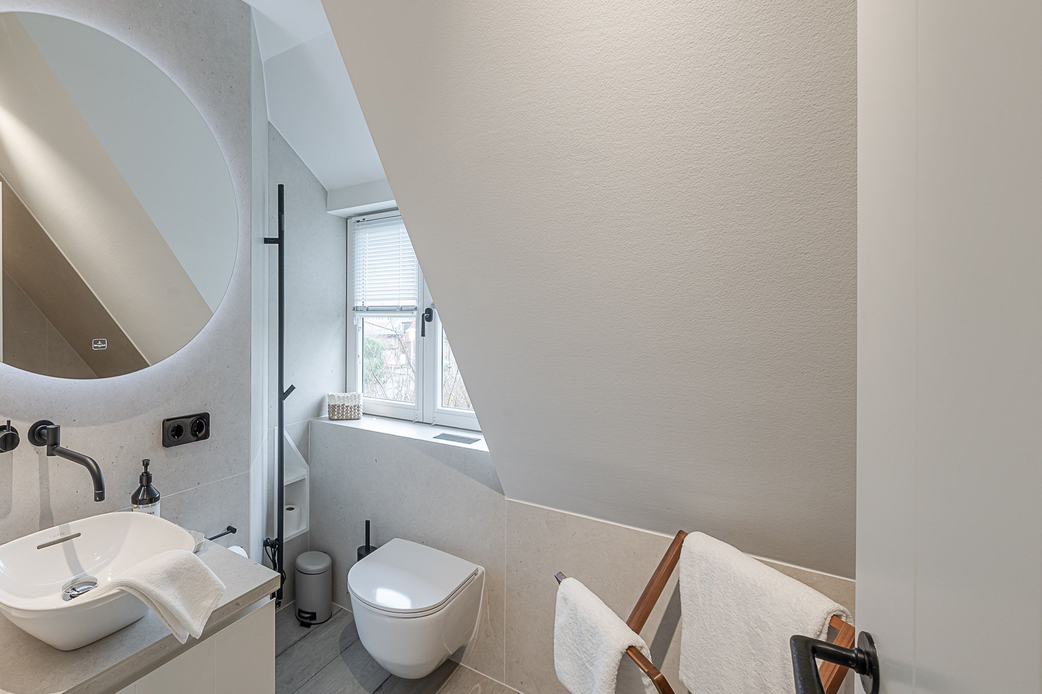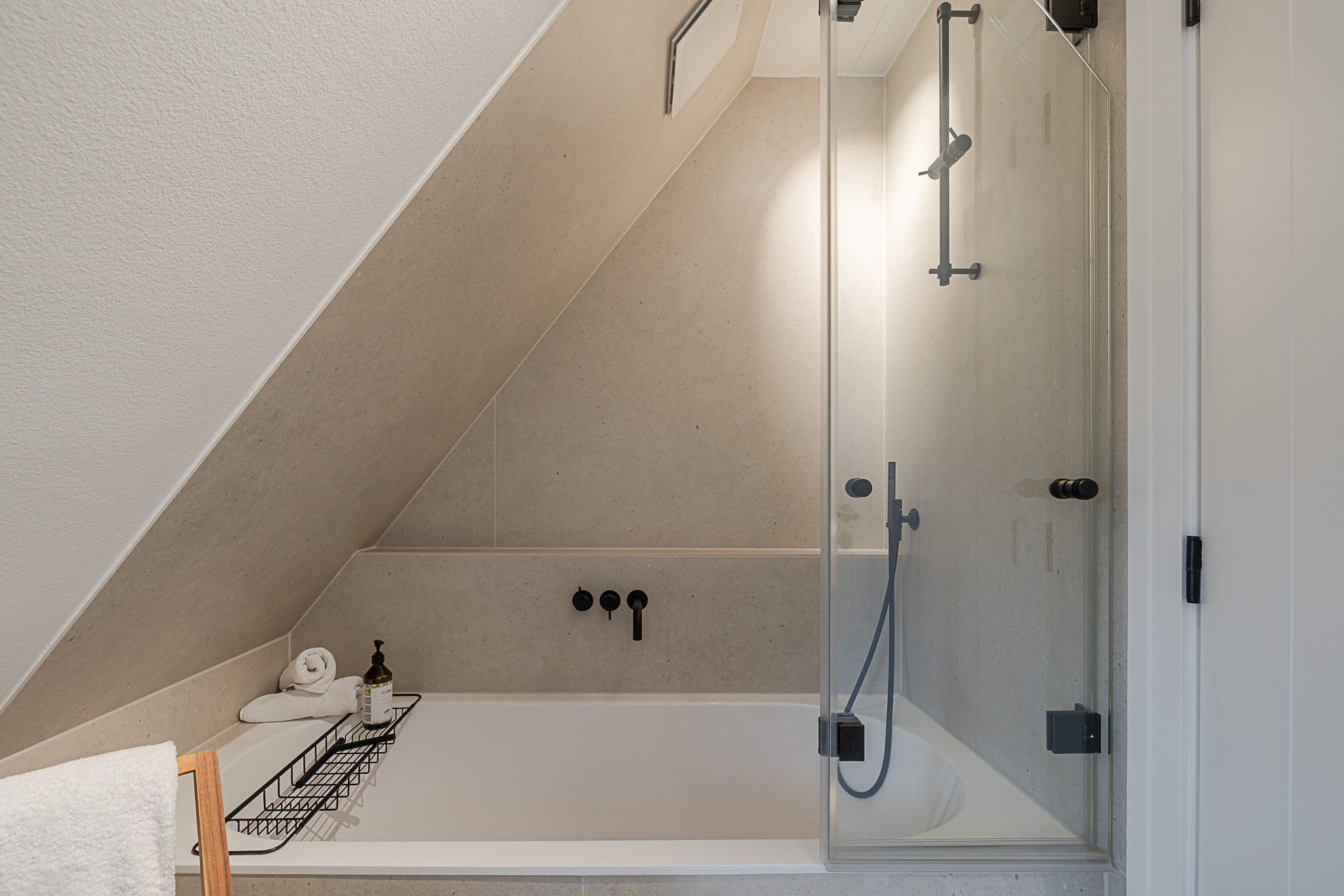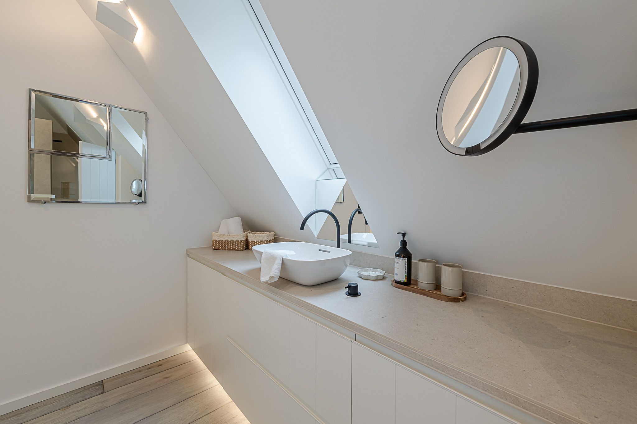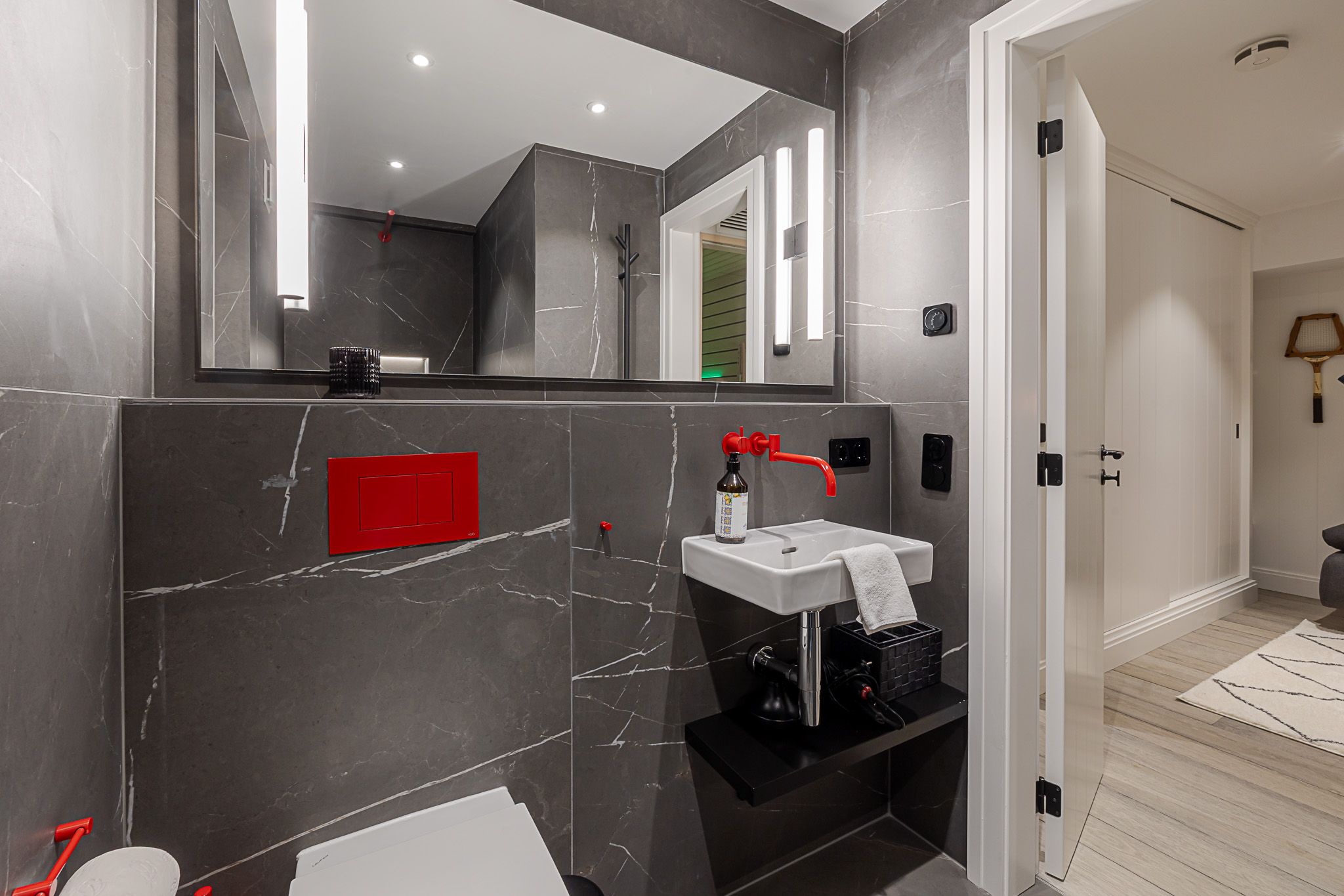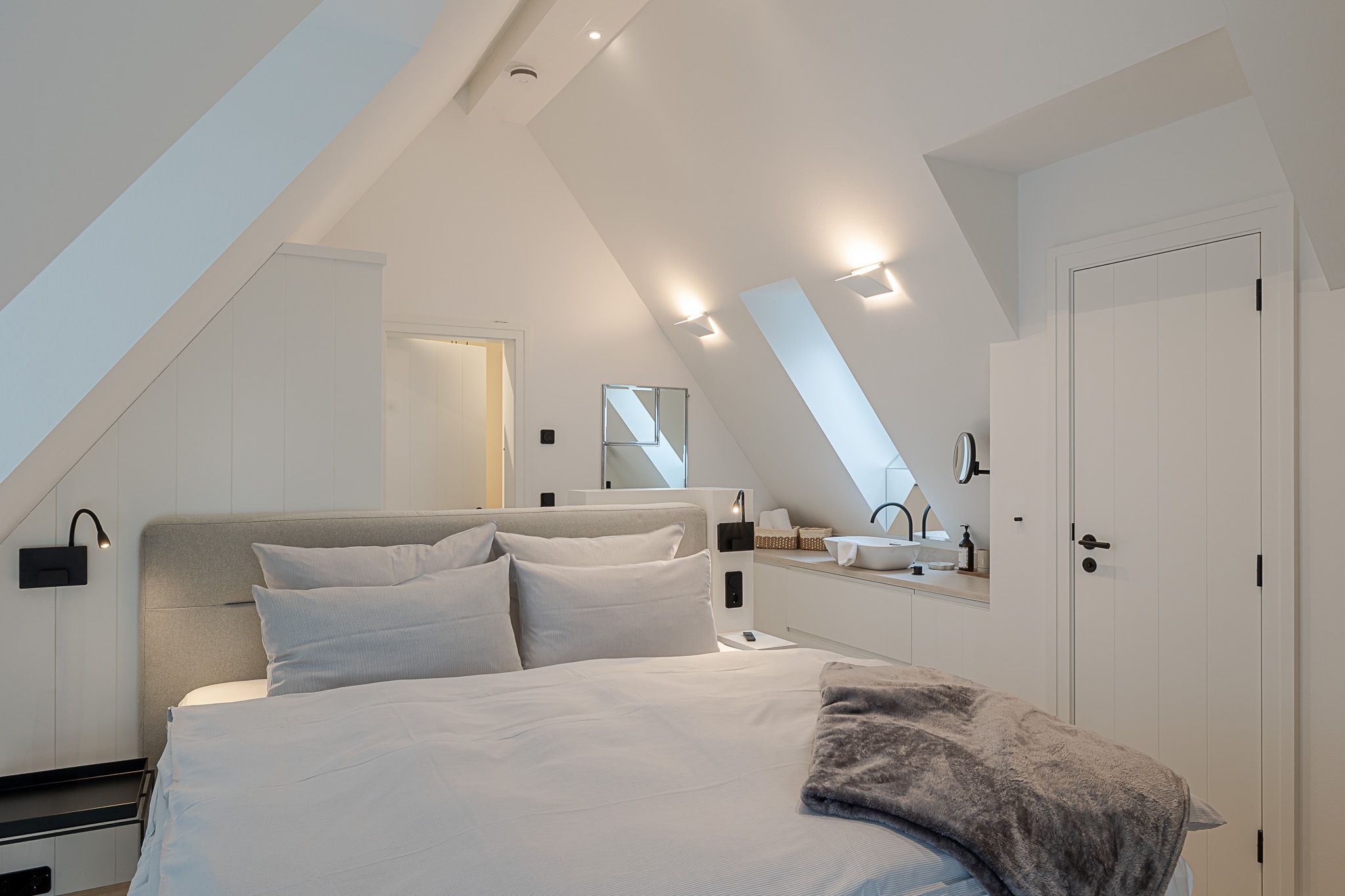Im oberen Bereich des Hauses finden Sie zwei elegante Schlafzimmer. Das eine, mit einem großzügigen Boxspringbett (1,80 x 2,00 m) und einem luxuriösen Bad en Suite, bietet Ihnen absolute Privatsphäre und Komfort. Das andere Schlafzimmer, ebenso mit einem hochwertigen Boxspringbett (1,80 x 2,00 m), verwöhnt Sie mit einem Hauch von Exklusivität und ebenfalls einem eigenen TV. Im Souterrain erwartet Sie ein zusätzliches Schlafzimmer mit Schlafcouch – ideal für Gäste oder kleine Auszeiten. Hier befindet sich auch ein modernes Bad mit Dusche sowie eine private Sauna für die besonderen Momente der Entspannung.